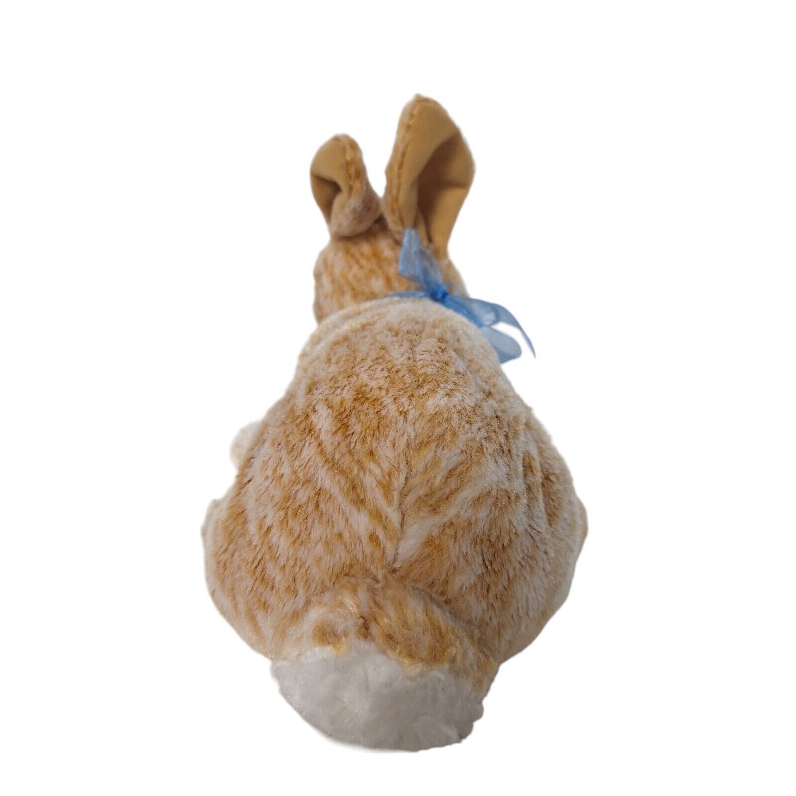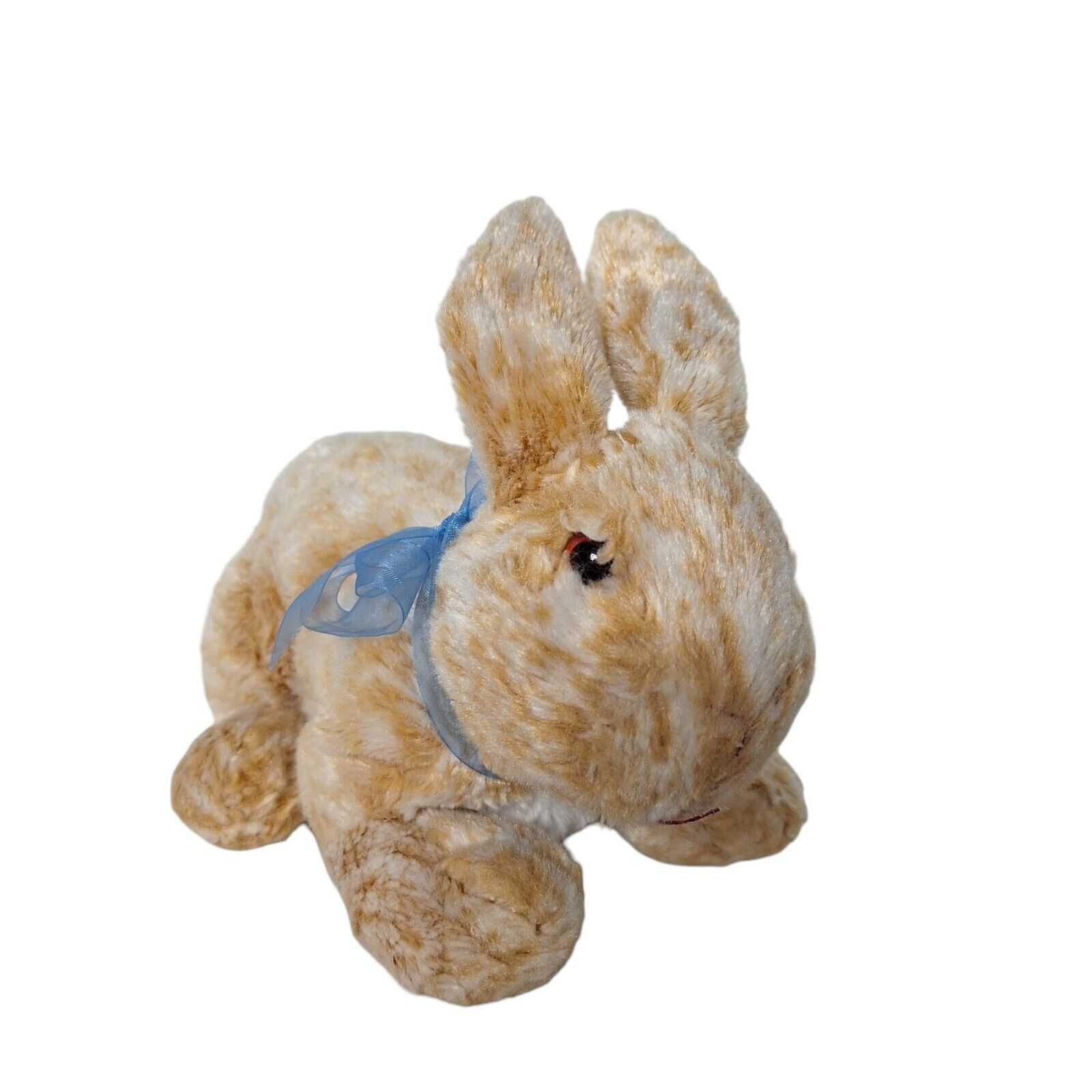 Brown White Easter Bunny Rabbit Spring Plush Blue Bow Stuffed Animal 9.5"