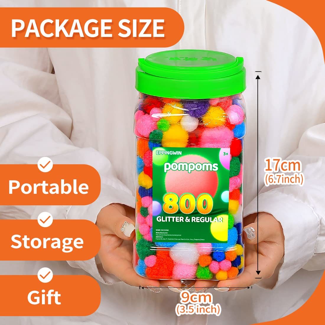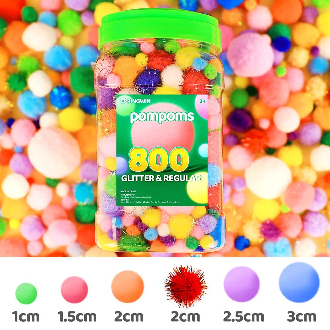 Eppingwin 800pcs Multi-Colored Pom Poms, Regular & Sparkly Pompoms, Assorted Si