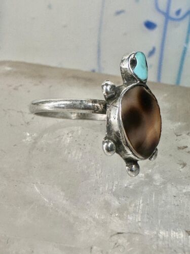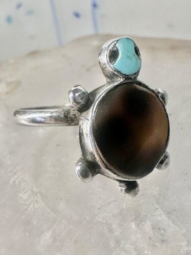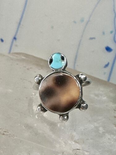 Turtle ring shell turquoise southwest band size 4.25 sterling silver women girls pinky