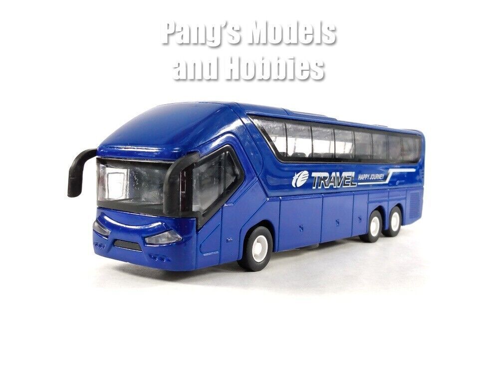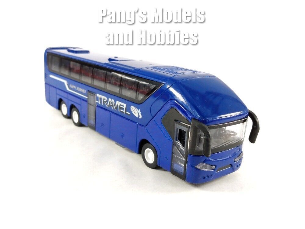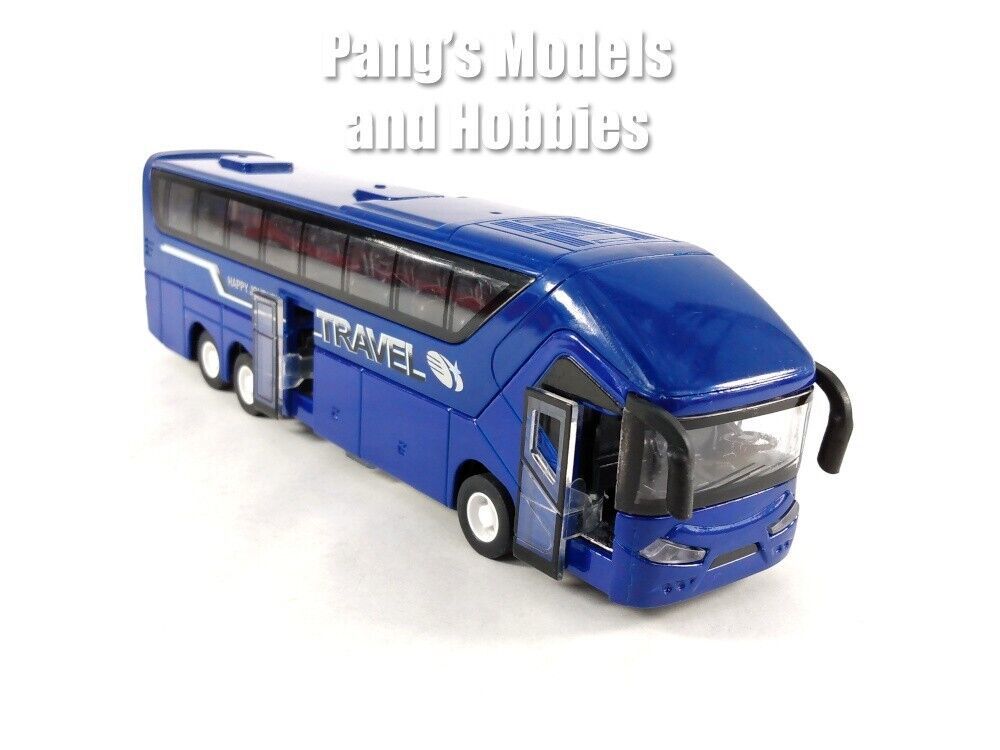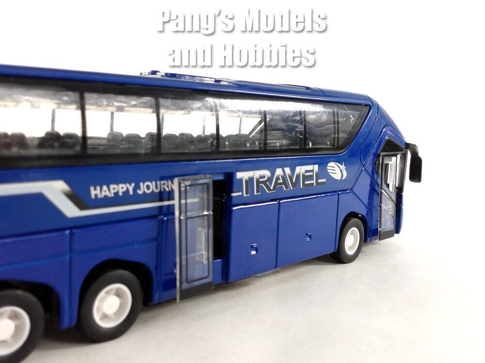 7.75 inch Travel Coach Bus w/ Lights & Sound 1/60 Scale Diecast Model - BLUE