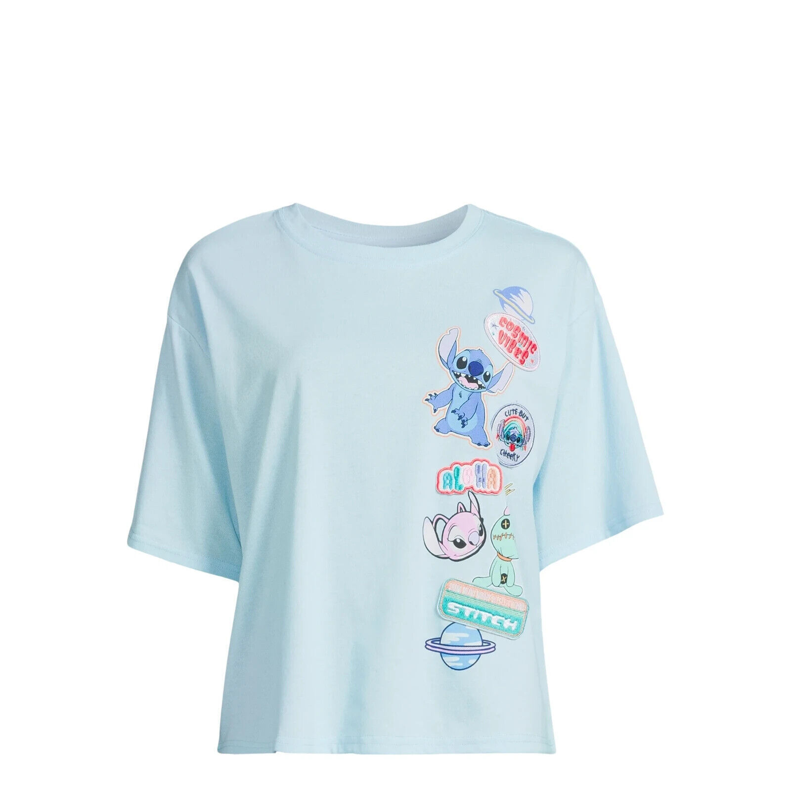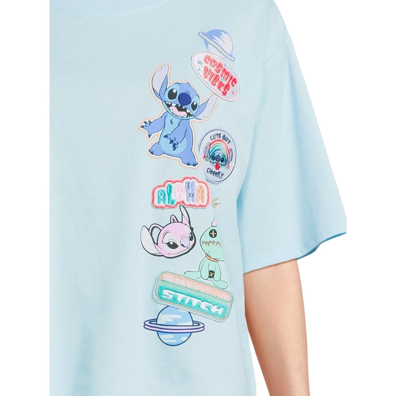 Stitch Women’s Multi Patch Graphic Tee with Short Sleeves, Blue Size 3XL(21)