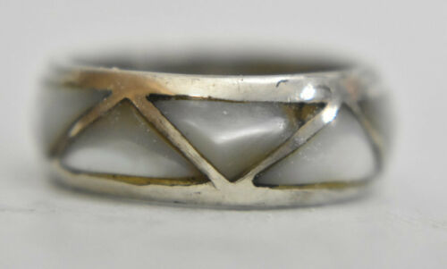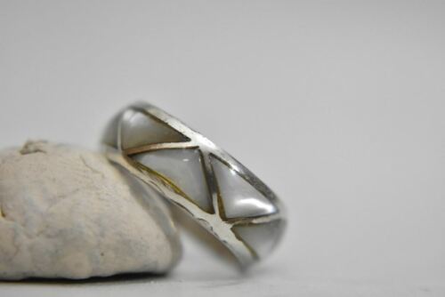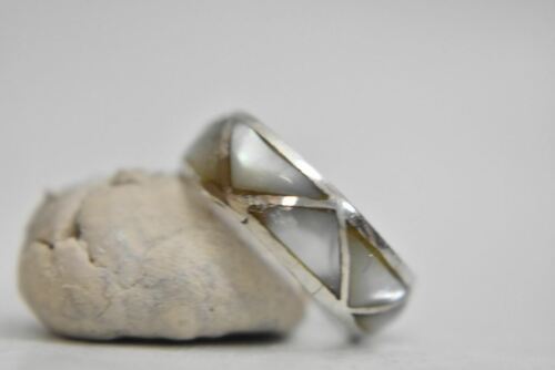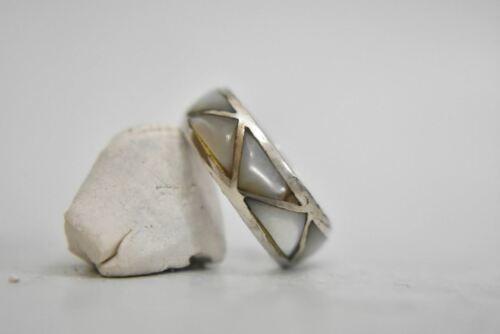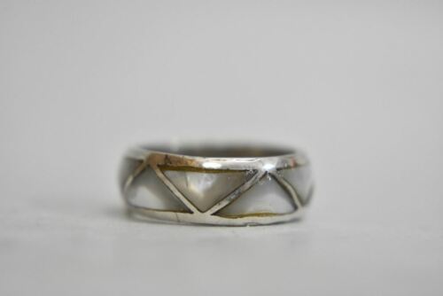 MOP Ring Wedding band southwest mother of pearl sterling silver boys Size 4.50
