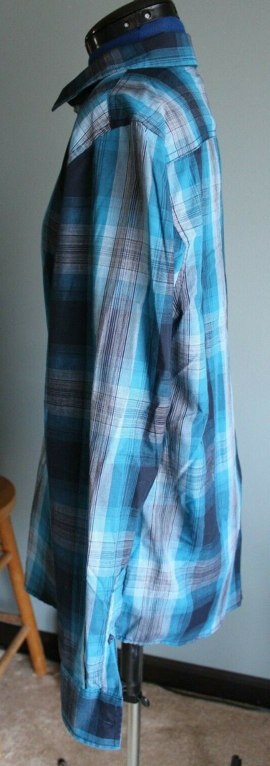 Men's American Rag Blue Plaid Long Sleeve Button Up Shirt ~M~