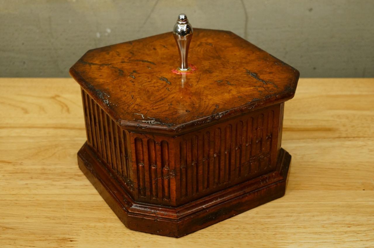 Vintage Signed Theodore Alexander Covered Wood Storage Box Octagonal Tea Caddy