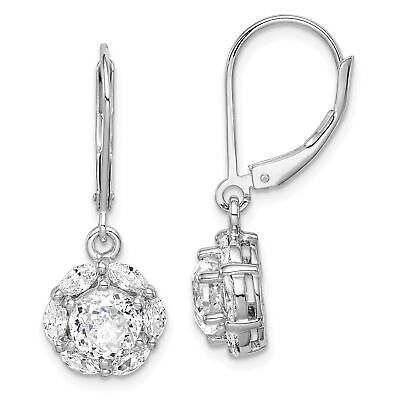 Silver Polished 6mm CZ Halo Leverback Earrings QE15101