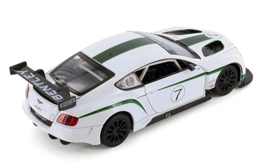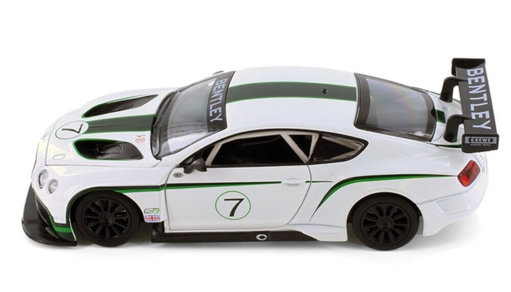This model of the 2018 Bentley Continental GT3 is about 8 inches long, 3.25 inches wide and 2.5 inches high. It is highly detailed, with beautiful body paint and accurate markings. Doors and hood can open to reveal interior details and engine.