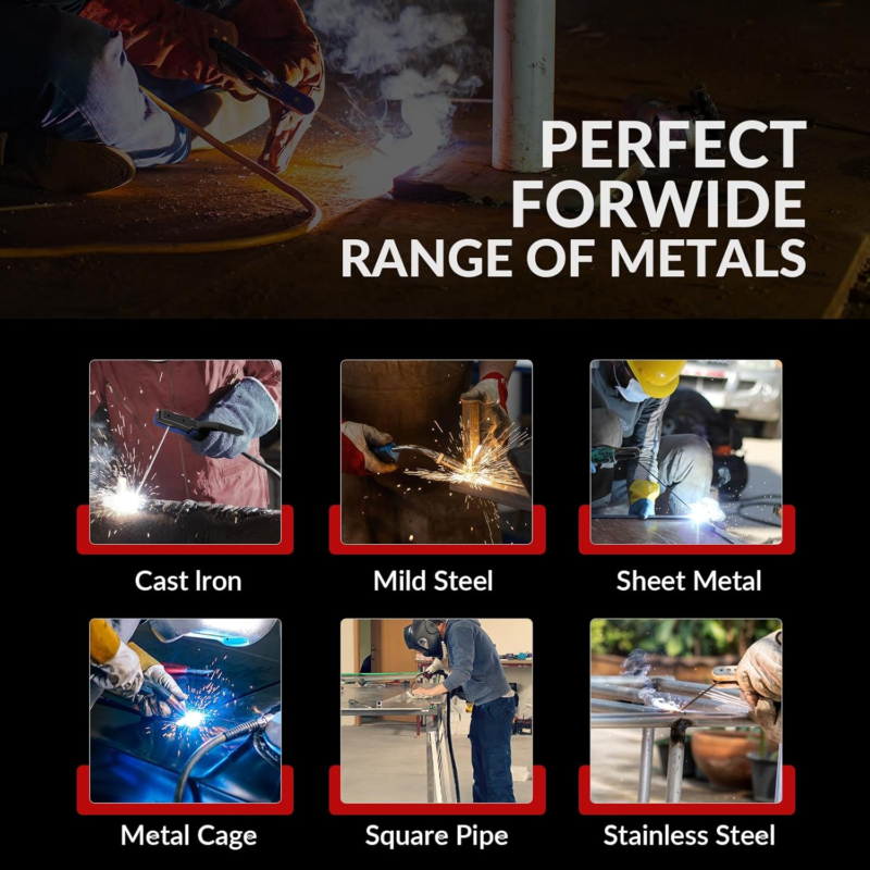 ?Synergic Design Easy to use ? The Mig welder 110v with Synergic Control design,automatic matching current(20-130A) voltage(90-140V), and wire feeding speed. The mig welder is easier for beginners or those who are learning to weld and want to make small repairs around the house.