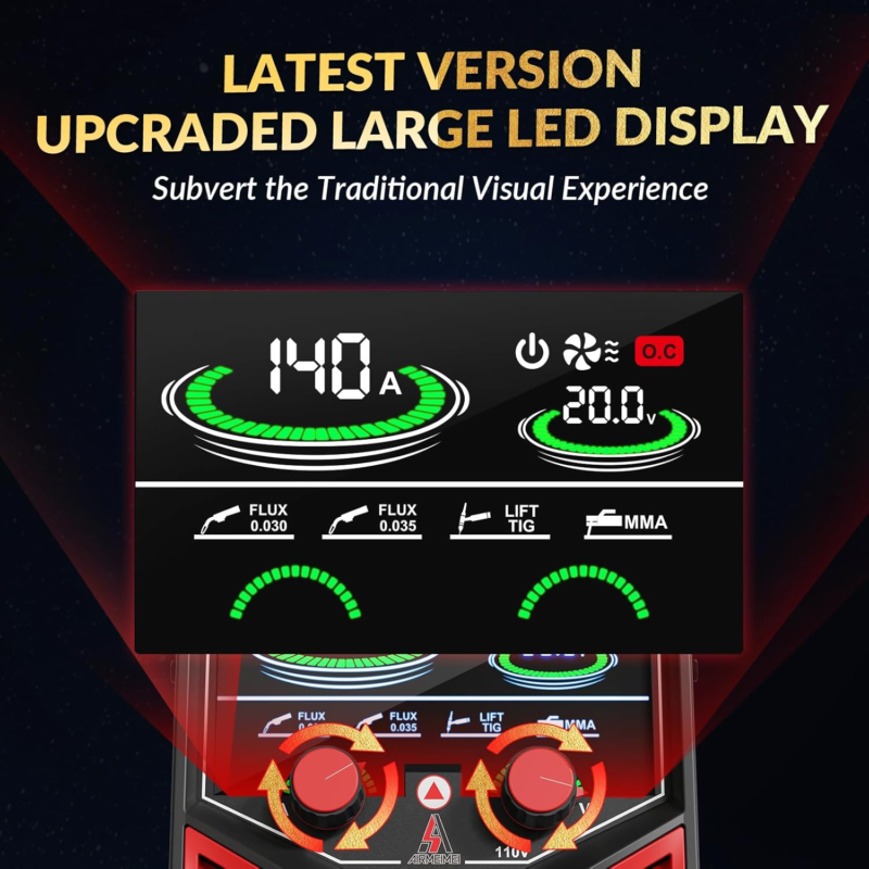?Secure and Stable?The Mig welding machine are made of durable ABS material,including built-in overheating,overcurrent,overvoltage and short circuit damage protections,real-time current digital display provides monitoring for beginners.