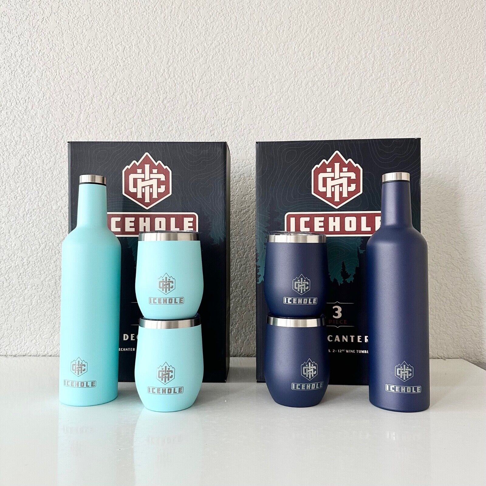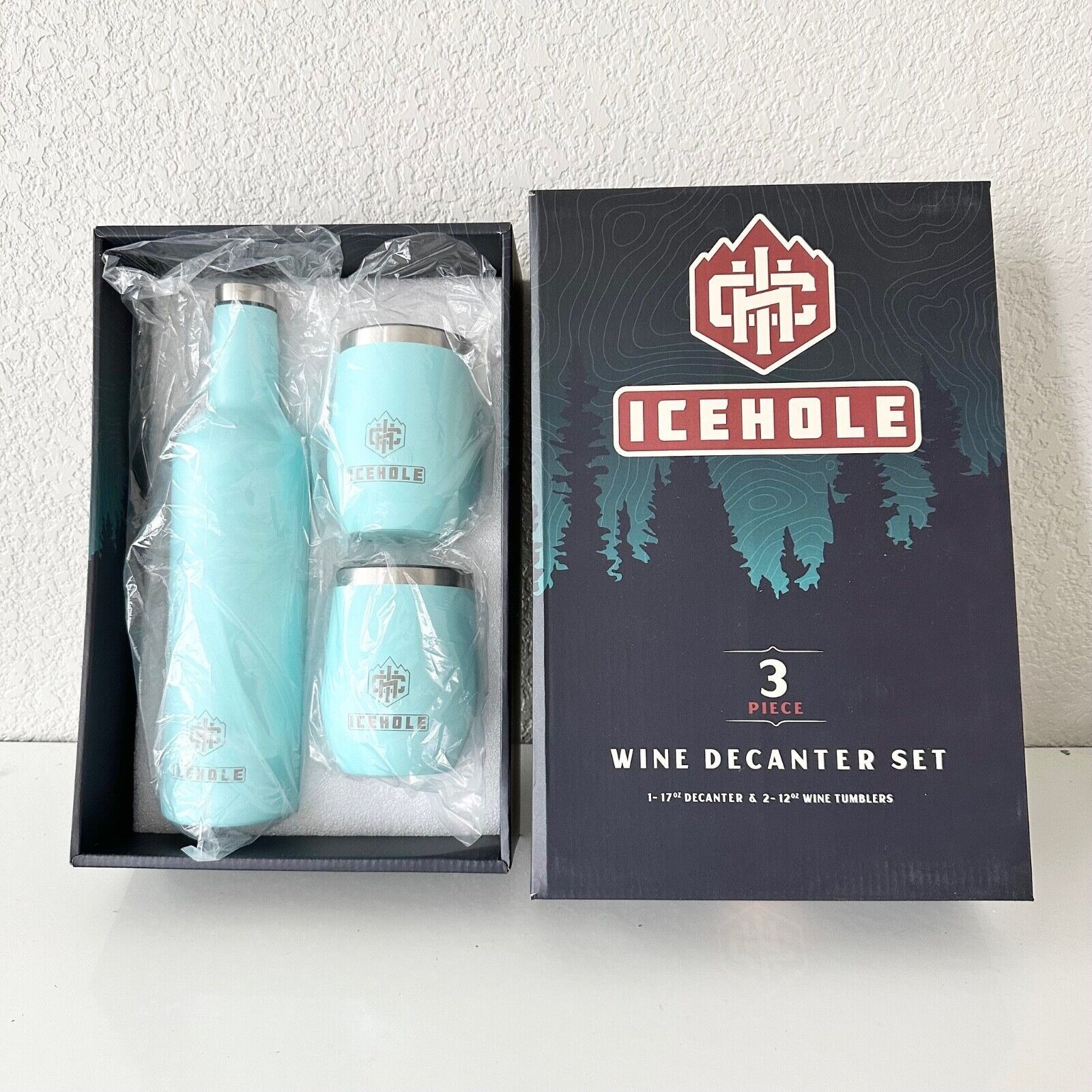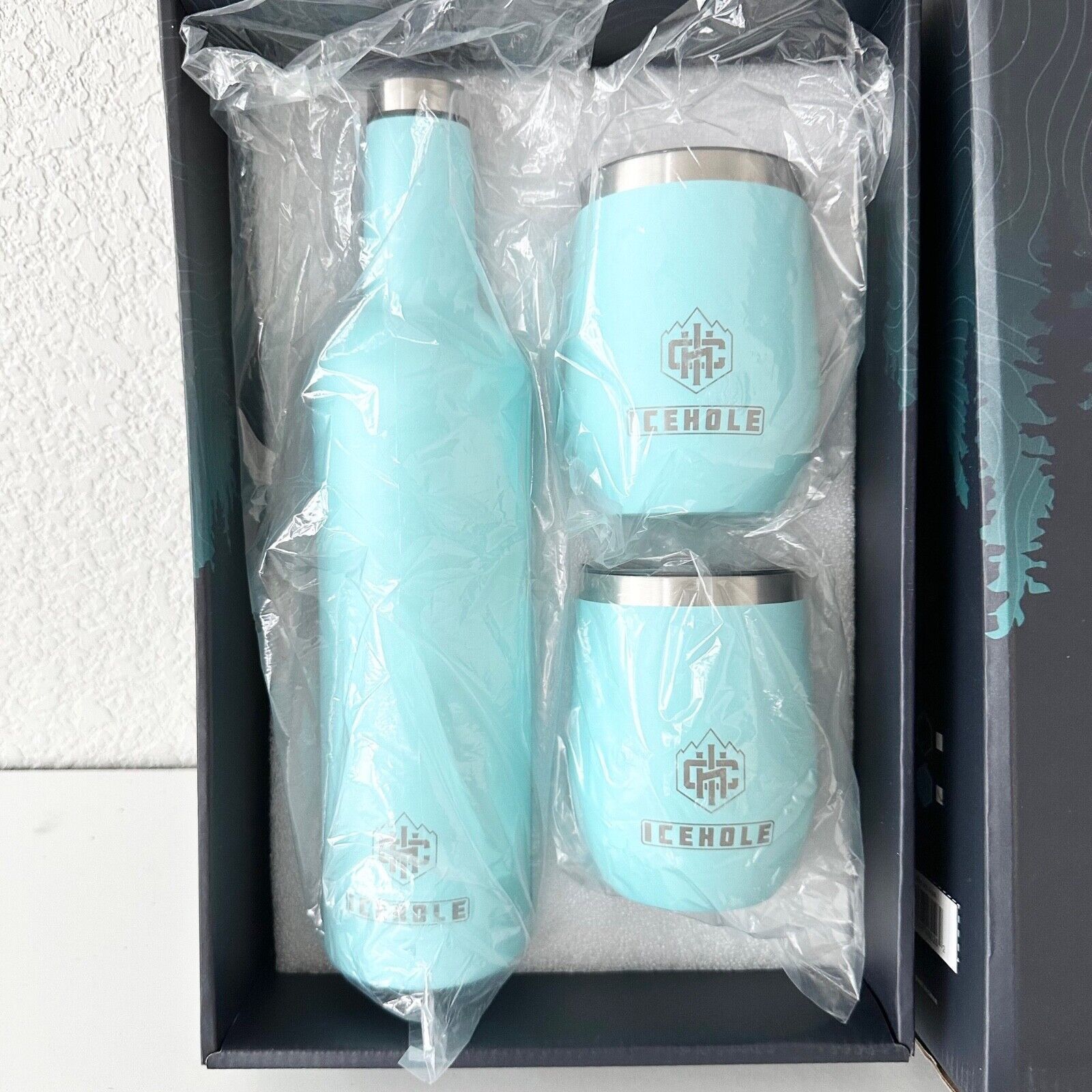 NEW ICEHOLE Wine Set Aqua 12 Oz Wine Tumbler Decanter Insulated Stainless Steel