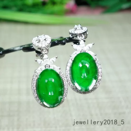 Certified Icy Green 阳绿 Burma100% Natural A jadeite Jade Earring s925 silver 满绿耳坠