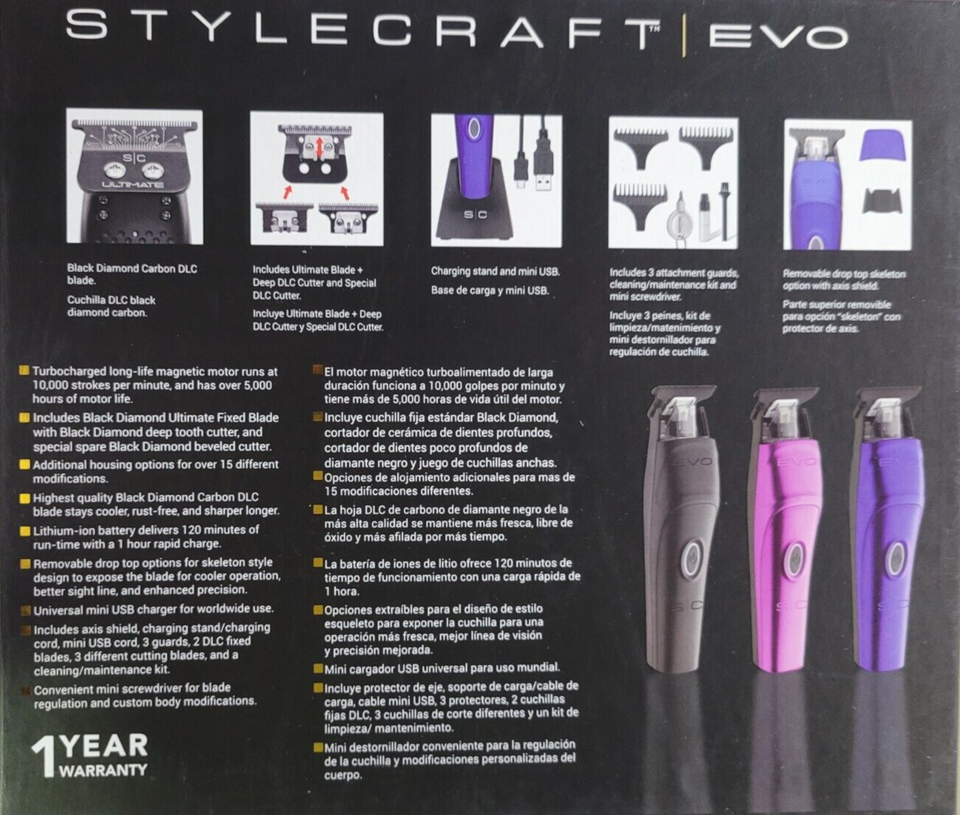 You are Buying a Brand New And Factory Sealed Stylecraft Evo Linear GA1015 Trimmer - Matte Black/Blue/Pink Model # SCELT.... Supercharged rotary motor powerful