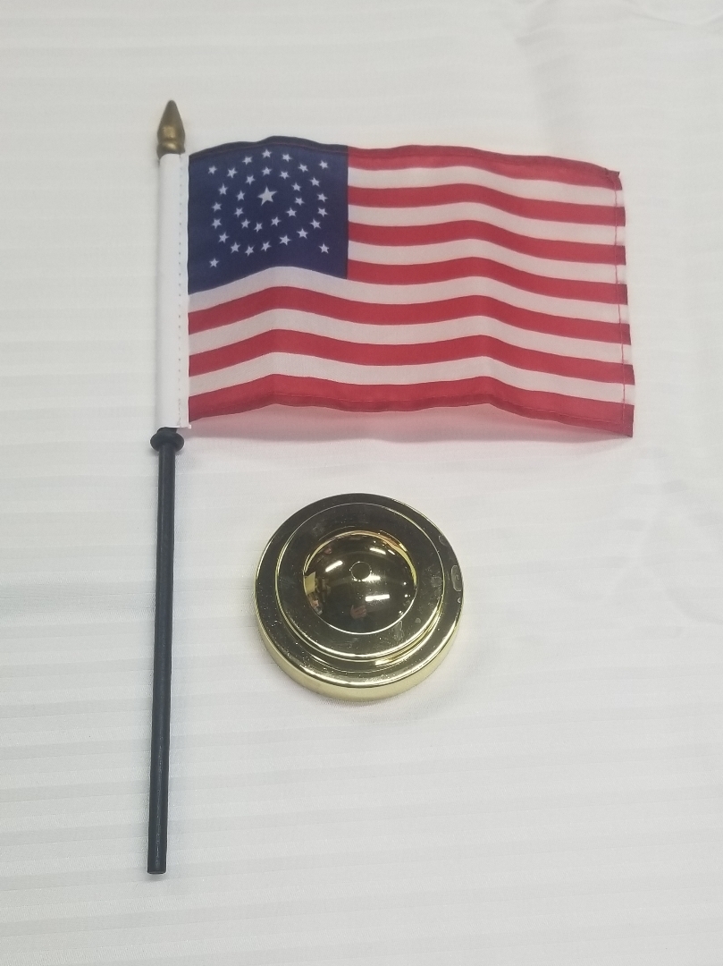 USA 34 Stars Original Official State Flag 4"x6" Desk Set with Gold Base