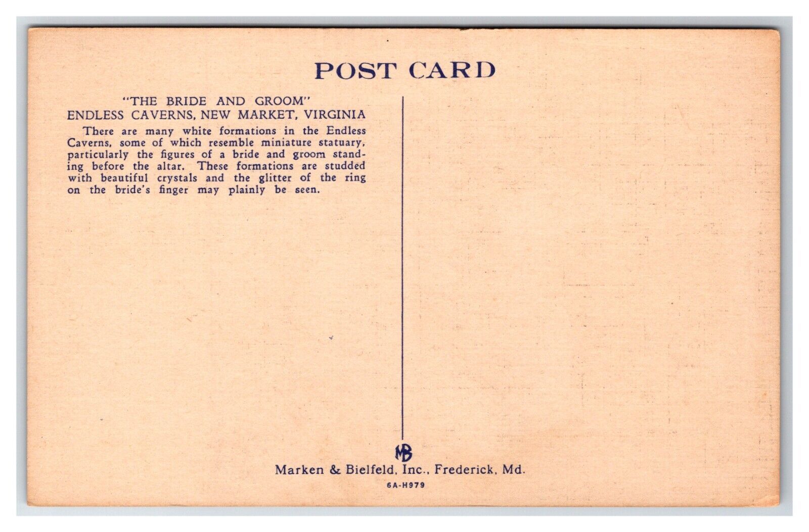 Bride and Groom Endless Caverns New Market Virginia VA UNP LInen Postcard R29