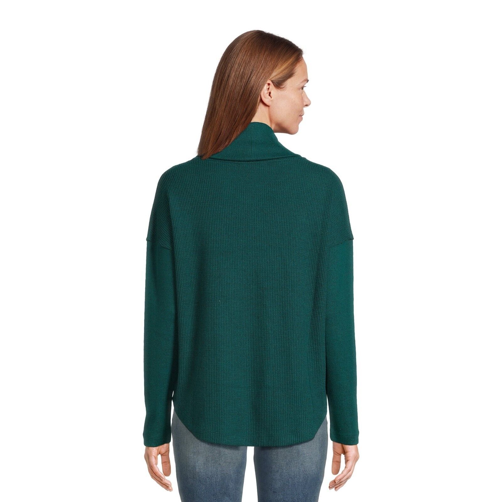 Time and Tru Women's Cowl Neck Waffle Tunic w/ Long Sleeves Green Size XL(16-18)