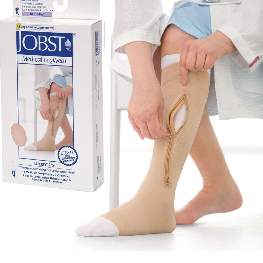 Title : JOBST Medical LegWear UlcerCare Knee HIgh Open Toe Zippered on Left Plus Liner 40 mmHg Beige X-Large