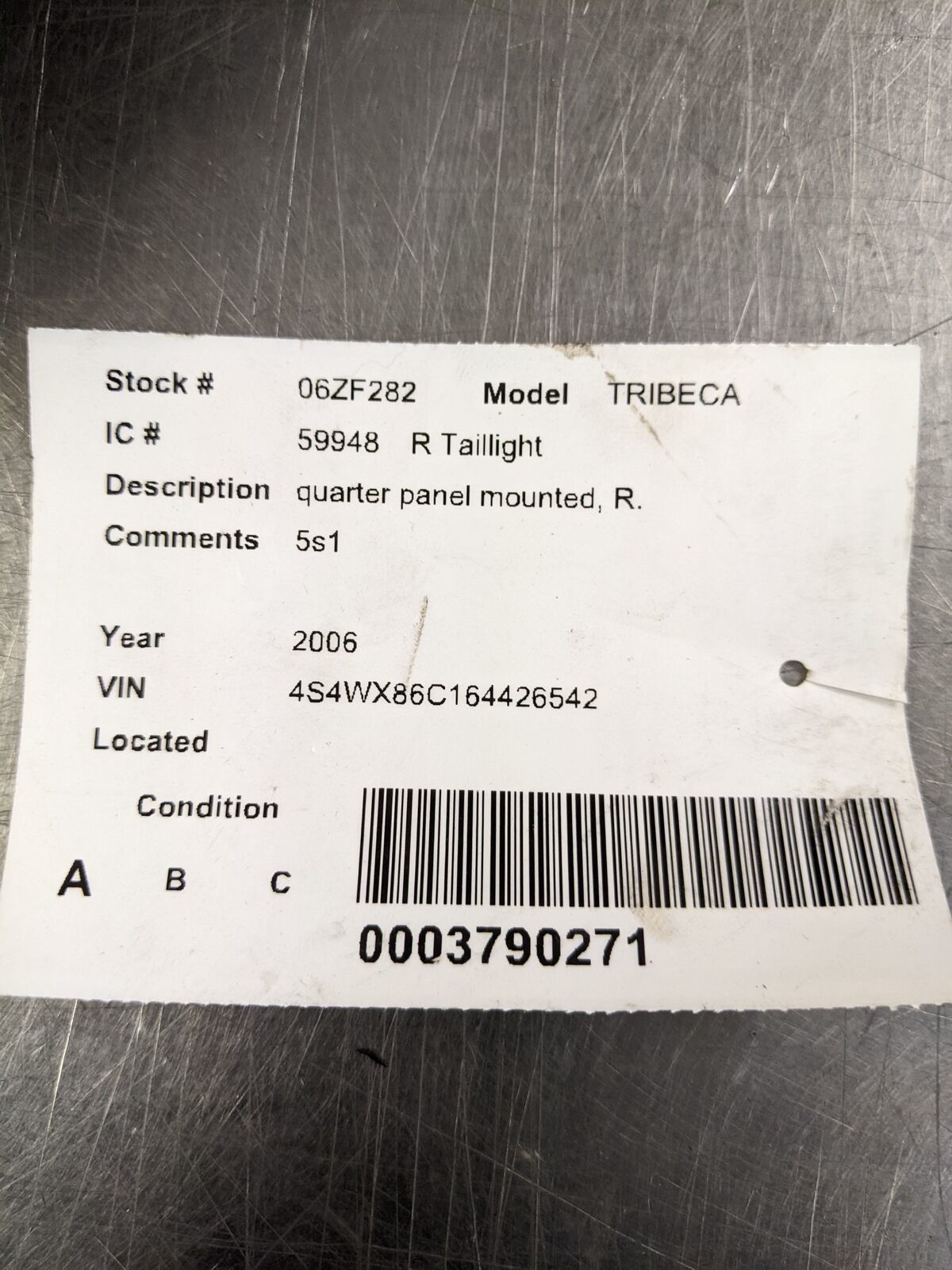 Passenger Right Tail Light From 2006 Subaru B9 Tribeca 3.0