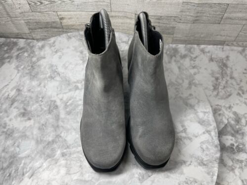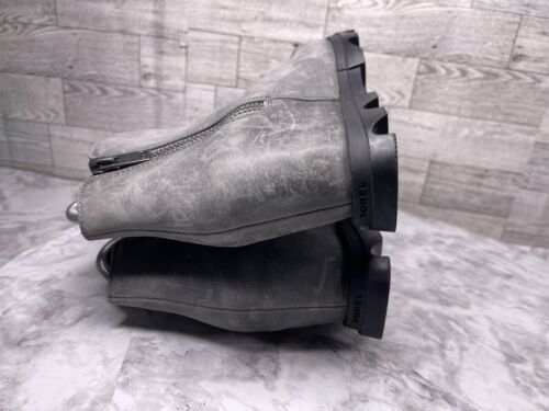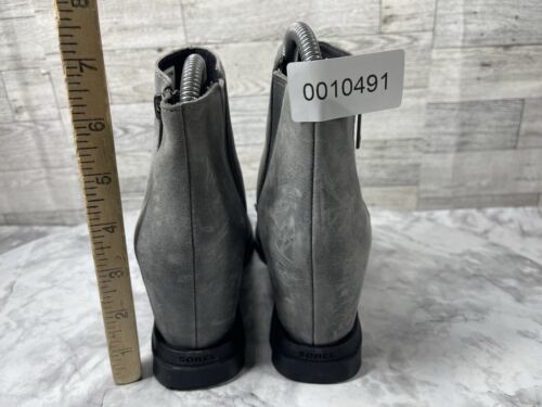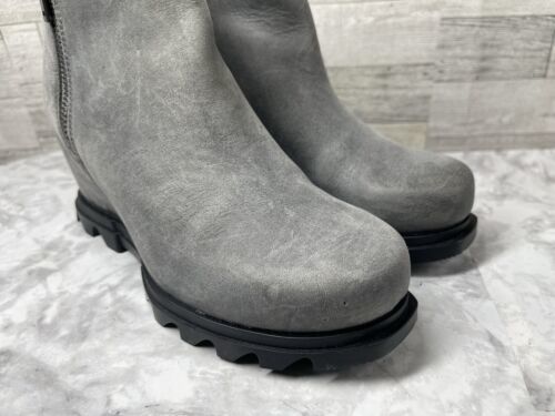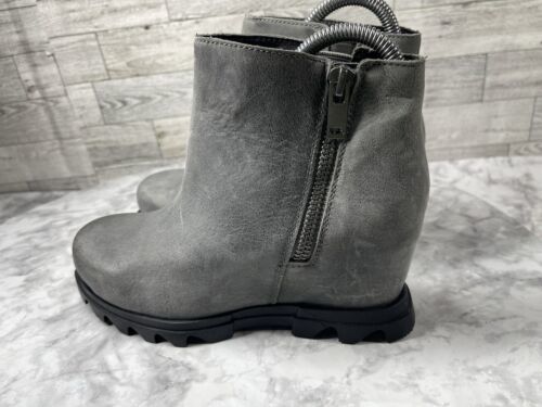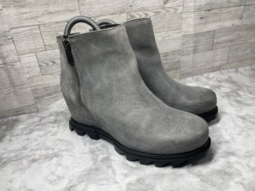 Sorel Boots Women 6.5M Joan Of Arctic III Shoe Gray Leather Hidden Wedge Zip Lug