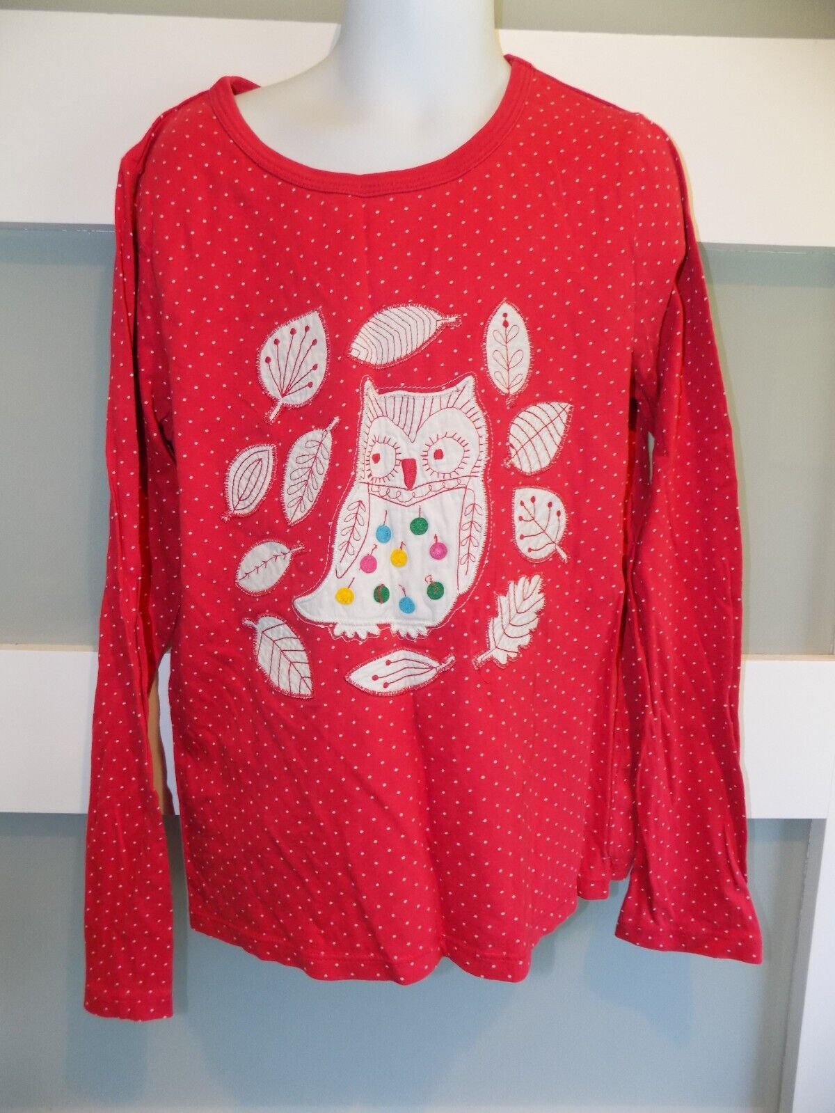 Mini Boden Red Owl Applique Polka Dot Shirt LS Size 9/10Y Girl's