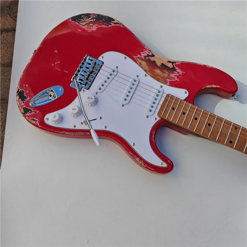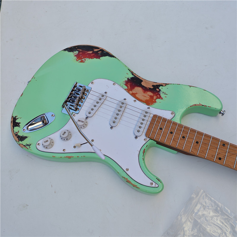 Retro 6 Strings Single Wave Electric Guitar,Alder Body Roasted Maple Neck SD693