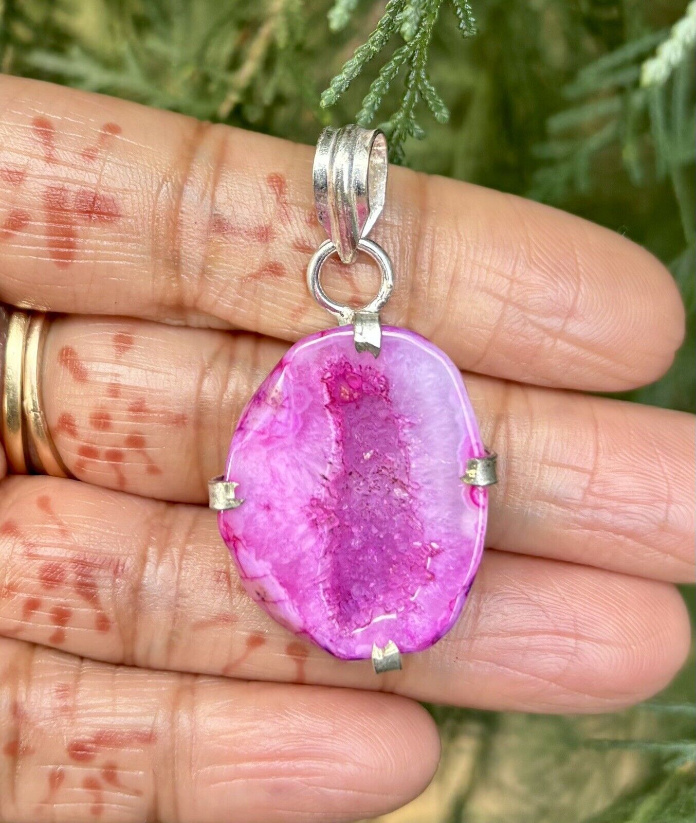 Ciondolo in argento sterling 925 placcato, pietra di agata geode druzy...