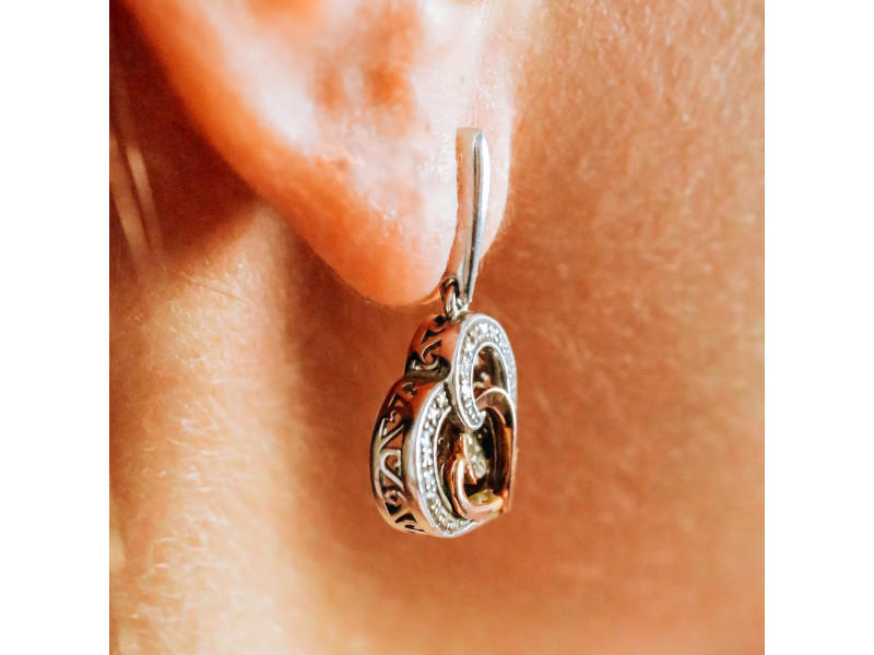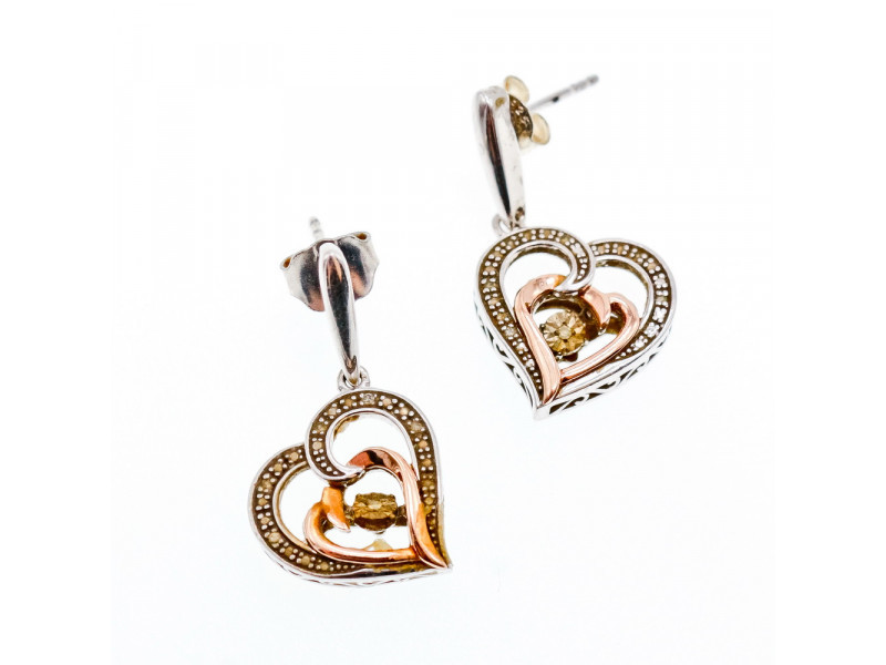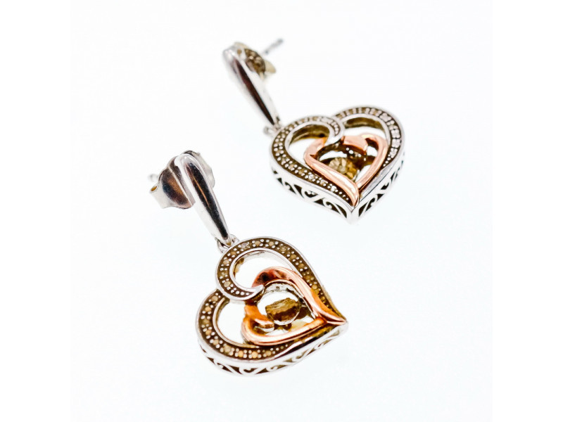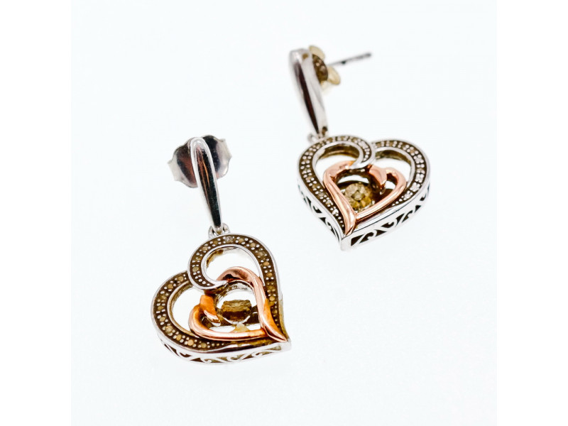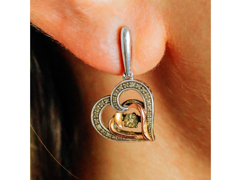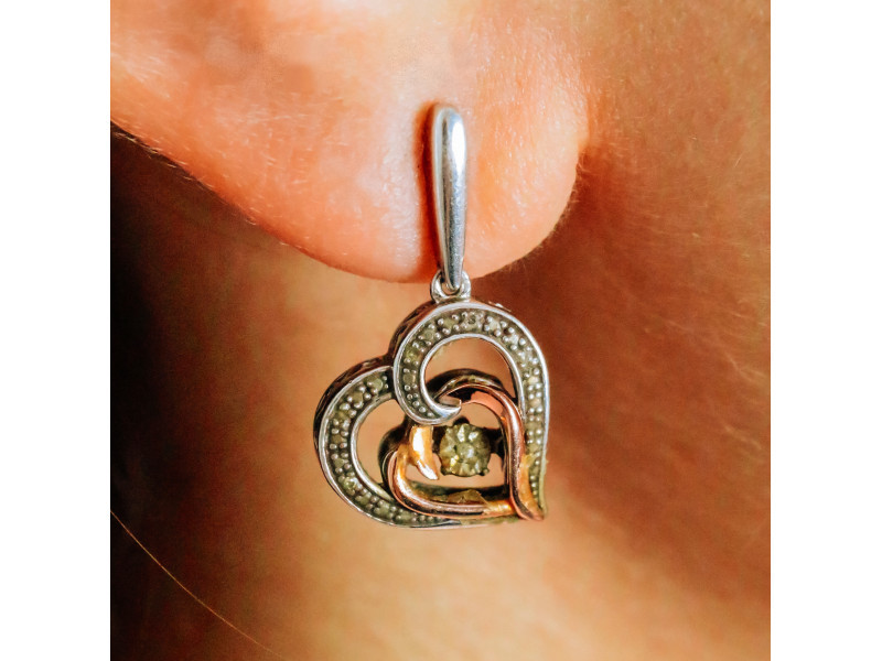 925 STERLING SILVER WITH GOLD INLAYS "HEARTS" EARRINGS