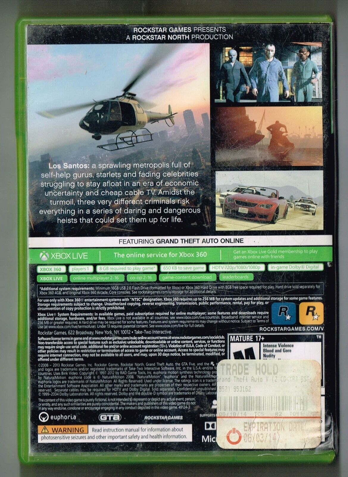 Grand Theft Auto V Xbox 360 video Game Disc and Case