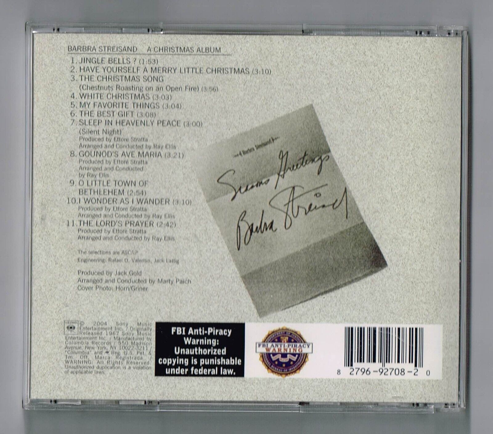 For Sale is a A Christmas Album [Remaster] by Barbra Streisand (CD, Aug-2004, Sony Music). In good USED condition comes as pictured. Please note the cd is not black and white our scanner just scanned it black and white its actually in color. Please ask Any and All Questions prior to purchasing. Fast Same or Next day shipping with Free Delivery Confirmation within the U.S. Payment Due within 7 days of purchase (if you need more time please let us know In advance) we love to combine shipping is always a Yes and Most of the time Additional Items Ship for free.