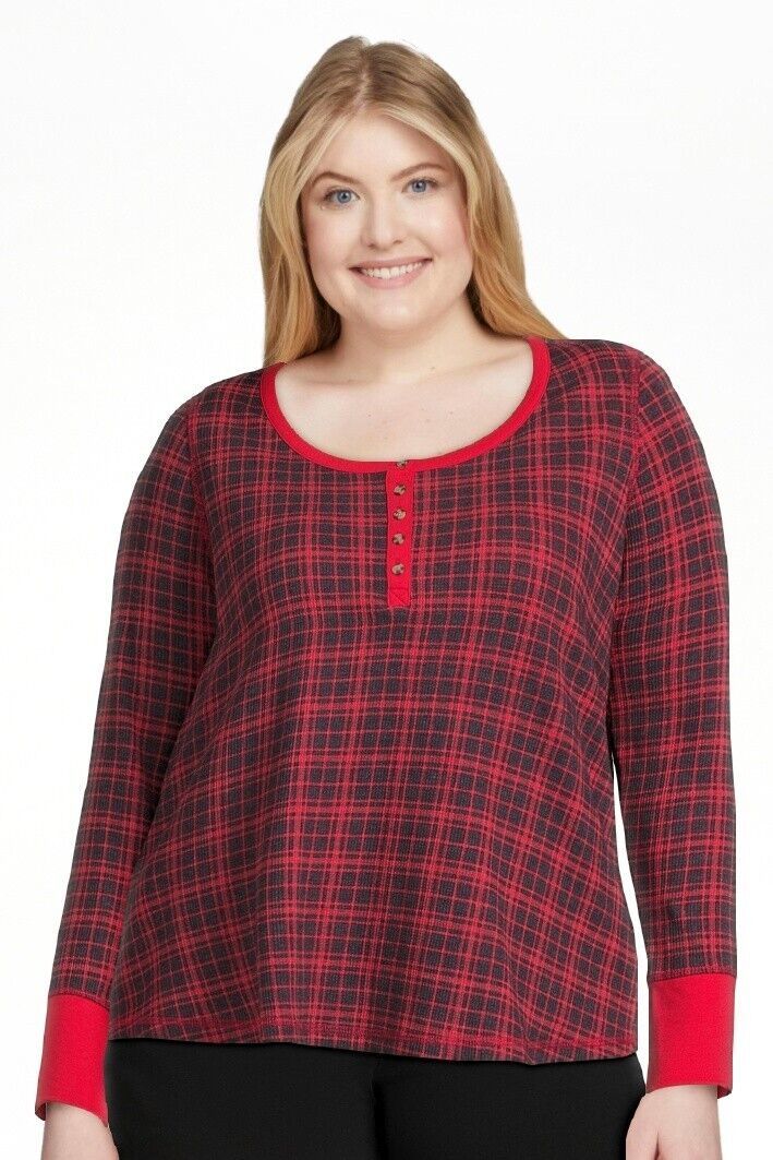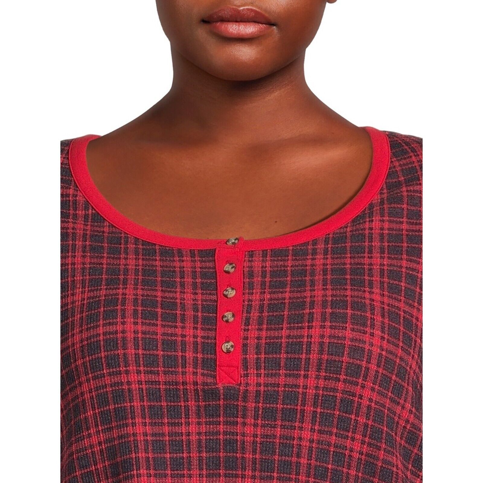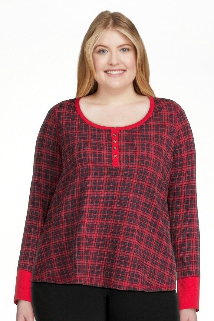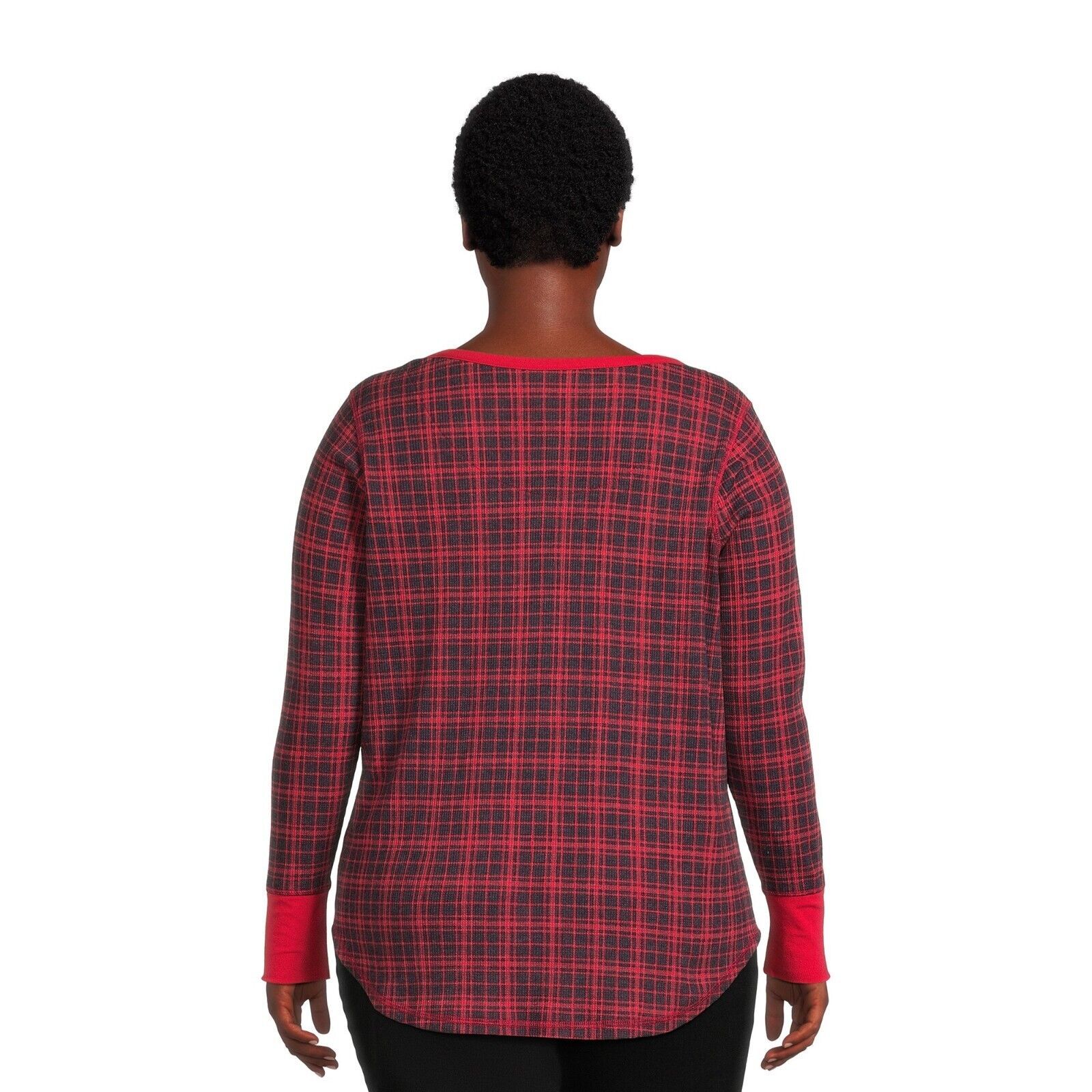 Terra Sky Women's Plus Size Waffle Tee w/ Long Sleeves, Red Plaid Size 4X(28-30W)
