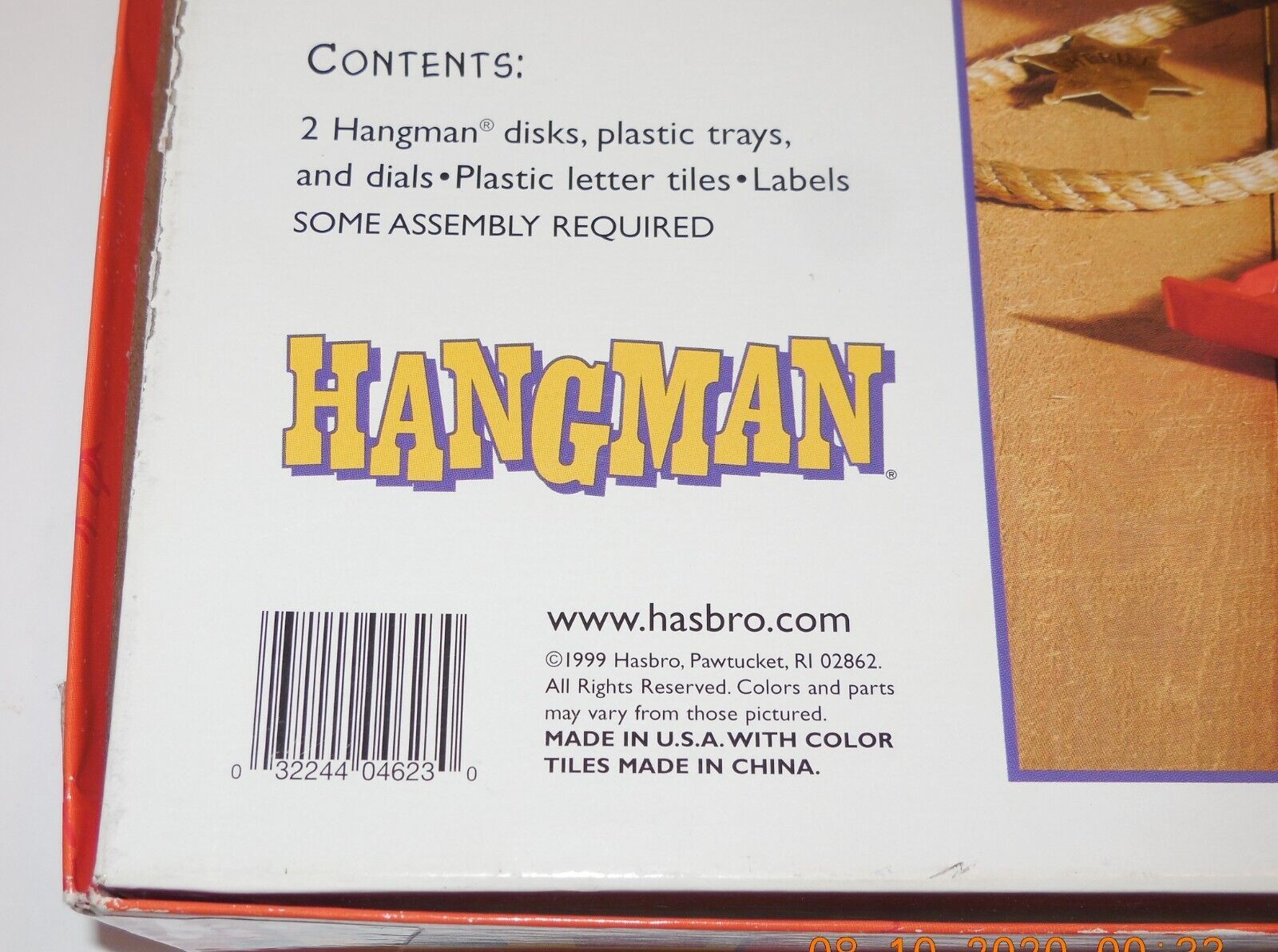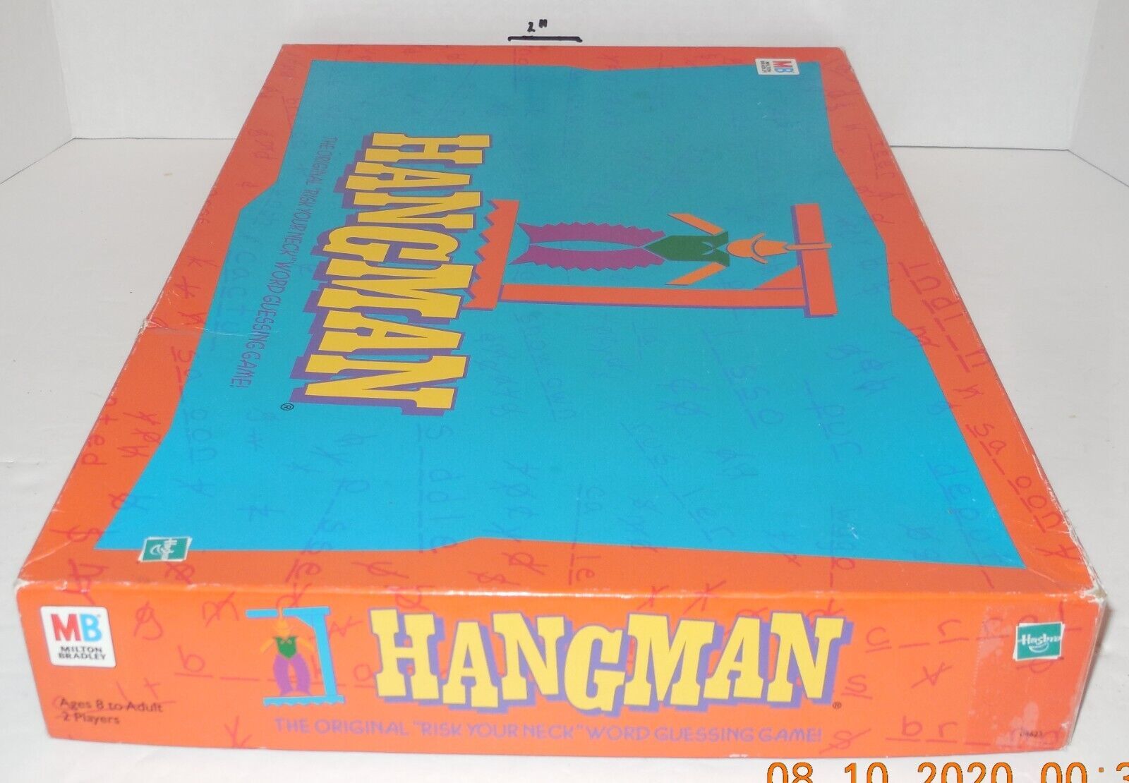 For Sale is a 1999 MB Milton Bradley Hasbro Hangman Board Game 100% COMPLETE Vintage. it in good Used condition. comes with the Pieces as seen in the pictures provided what you see is what you will receive. Please ask Any and All Questions prior to purchasing. Fast Same or Next day shipping with Free Delivery Confirmation within the U.S. Payment Due within 7 days of purchase (if you need more time please let us know In advance) we love to combine shipping is always a Yes and Most of the time Additional Items Ship for free.