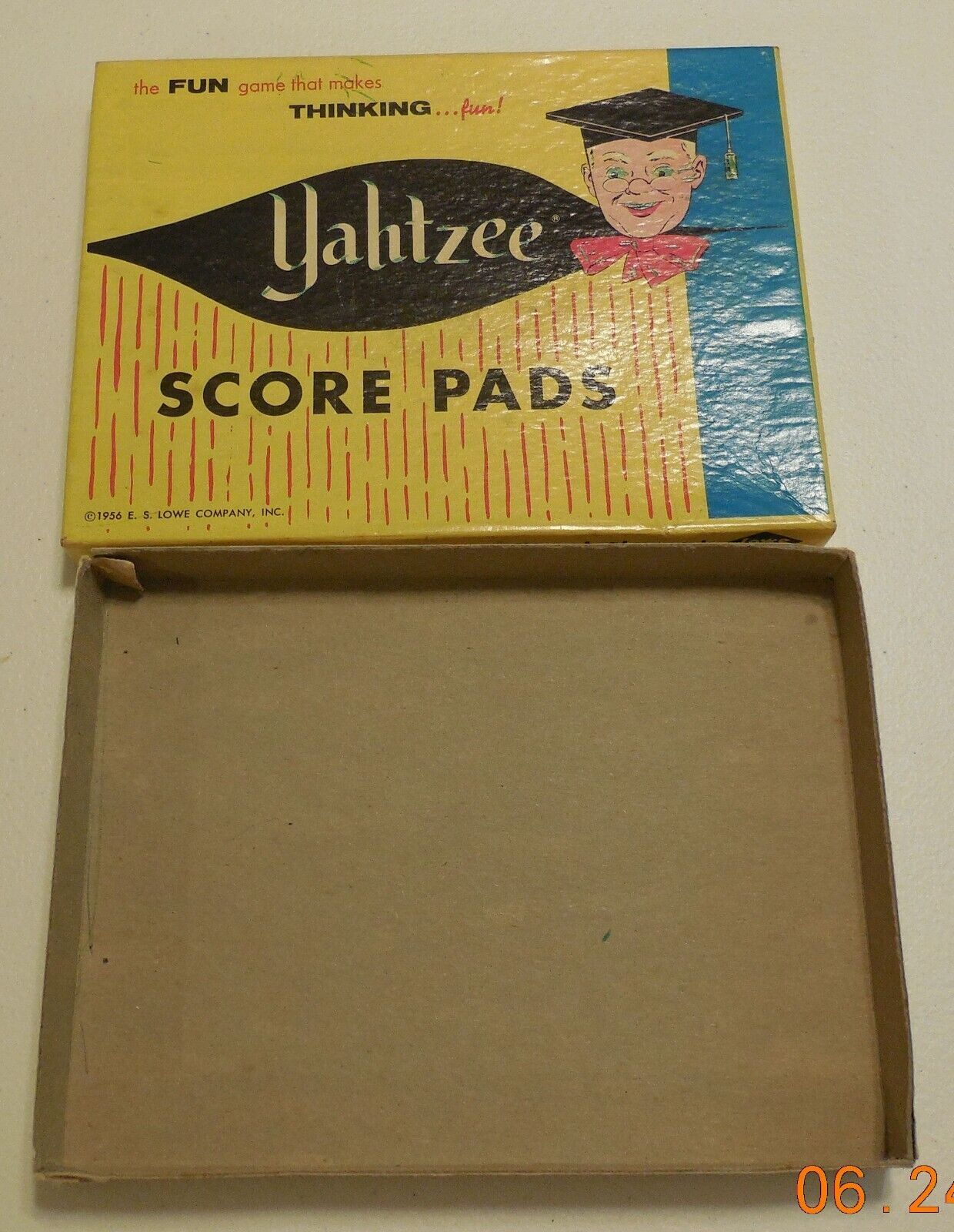 For Sale is a 1956 YAHTZEE Board game Replacement Box For scoring pads Piece Part E.S. Lowe. This is for the 1956