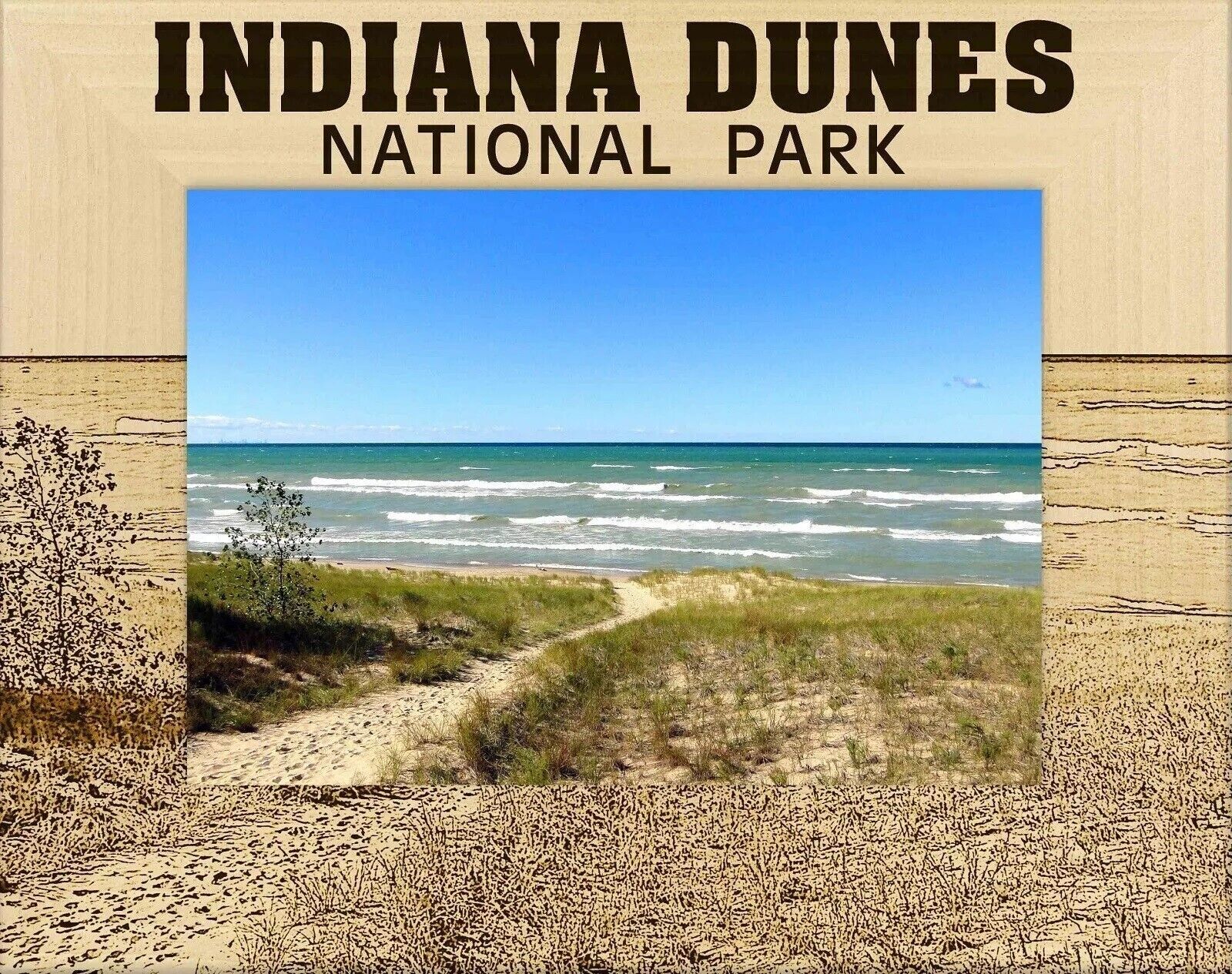 Indiana Dunes National Park Laser Engraved Wood Picture Frame Landscape (3 x 5)