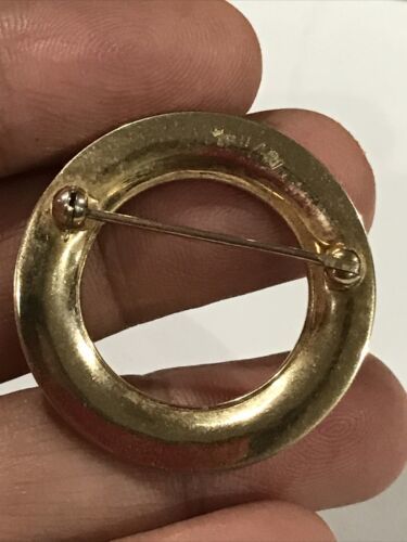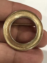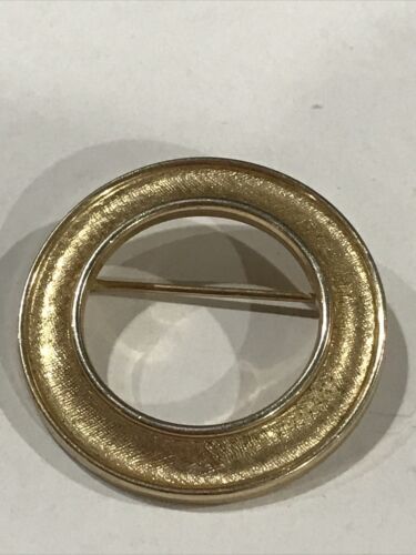 Vintage Signed CROWN TRIFARI Brushed Gold Tone OPEN CIRCLE Pin Brooch Classic. Shipped with USPS First Class.