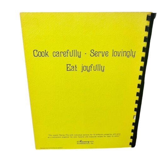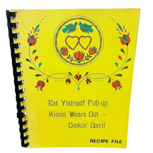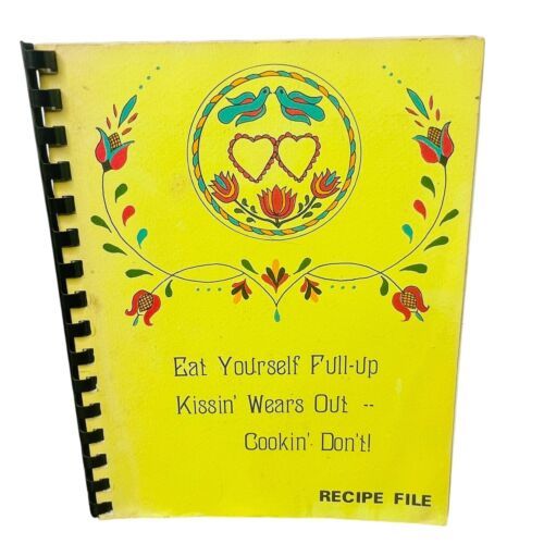 Delve into the charm of Pennsylvania Dutch cooking with Anne B. Schmidt's "Eat Yourself Full-Up Kissin' Wears Out-- Cookin Don't Recipe FILE." This unique 1974 paperback offers a nostalgic journey through traditional dishes with its spiral-bound format and 12 handy pockets, perfect for file-keeping or as a conversation starter.