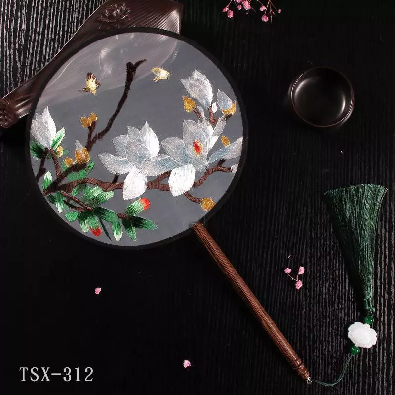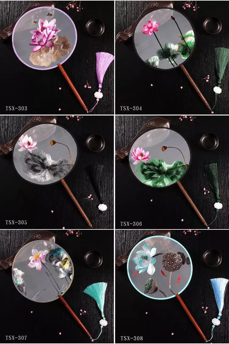 Chinese Double-sided 100%hand embroidered Suzhou embroidery palace fan 1Piece