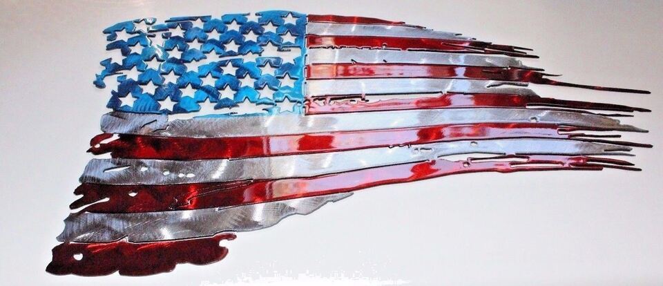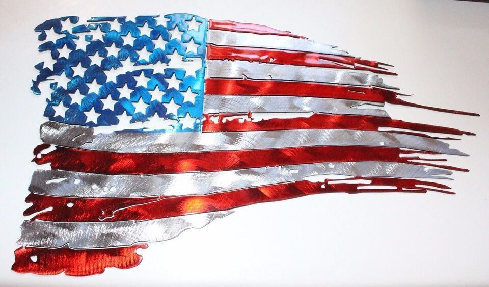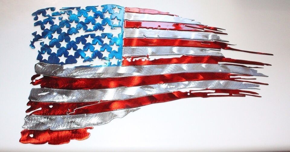 Patriotic Tattered & Torn American Flag - Metal Wall Art - 42" x 24 1/2"