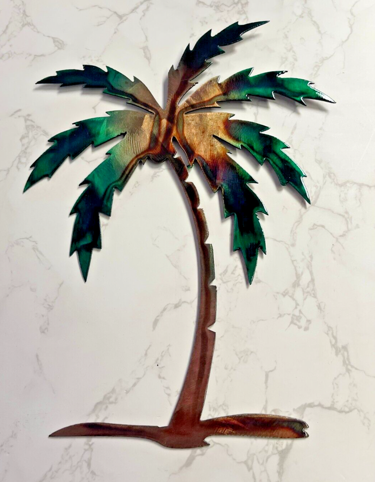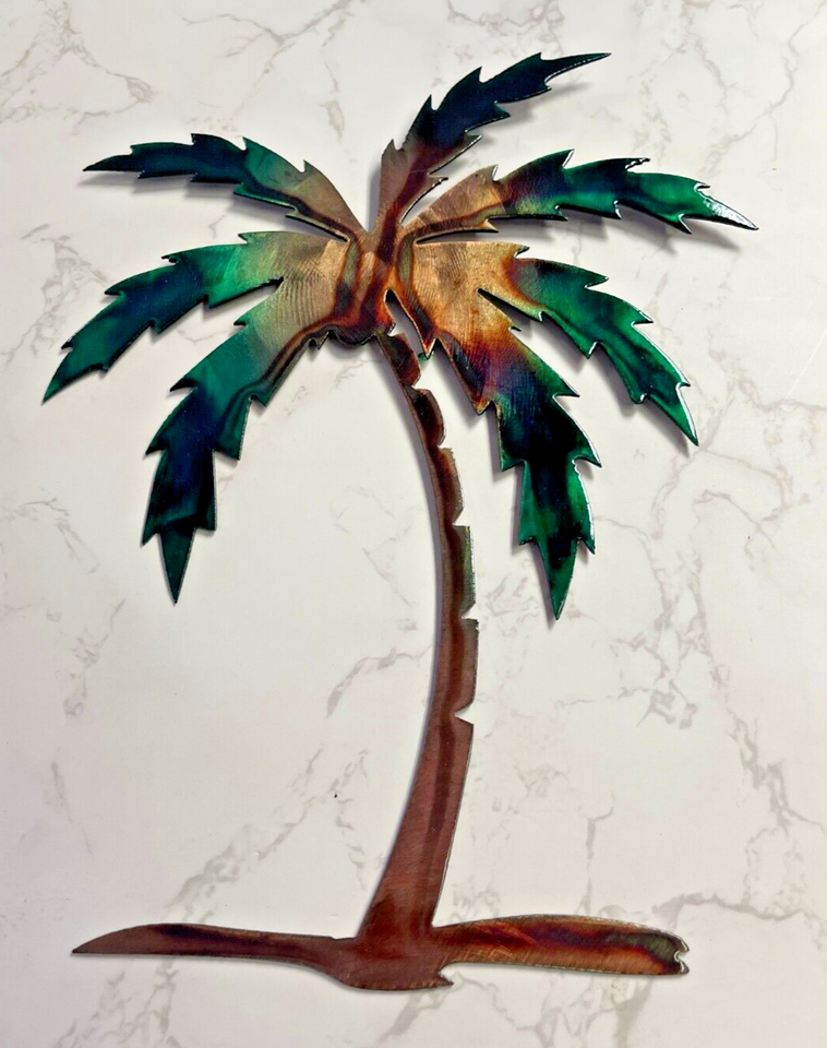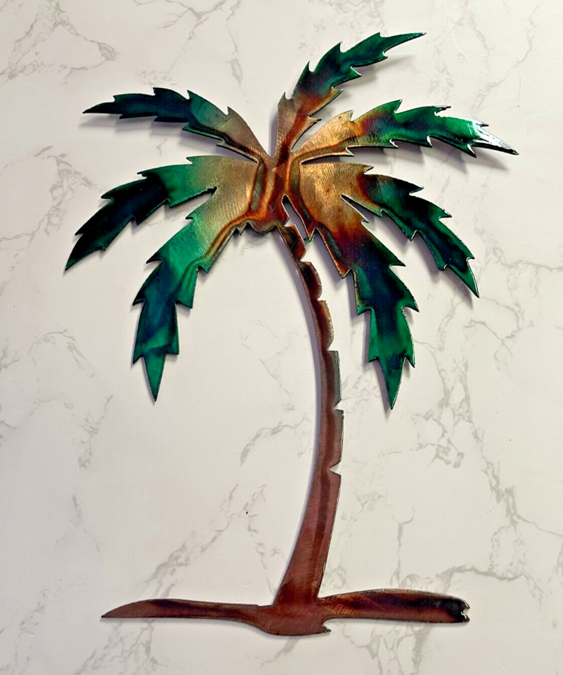 Palm Tree Metal Wall Art Décor 14" tall Left Facing Marbled Green copper/Bronze