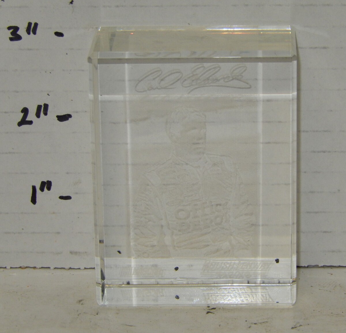 Nascar 3D Laser Etched 3" Crystal Paperweight Carl Edwards Office Depot