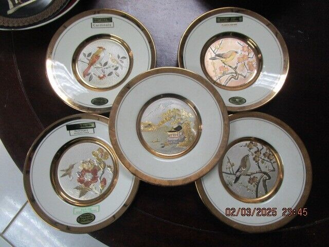 The Art Of Chokin Japan 5 Bird Plates Gold and 50 similar items