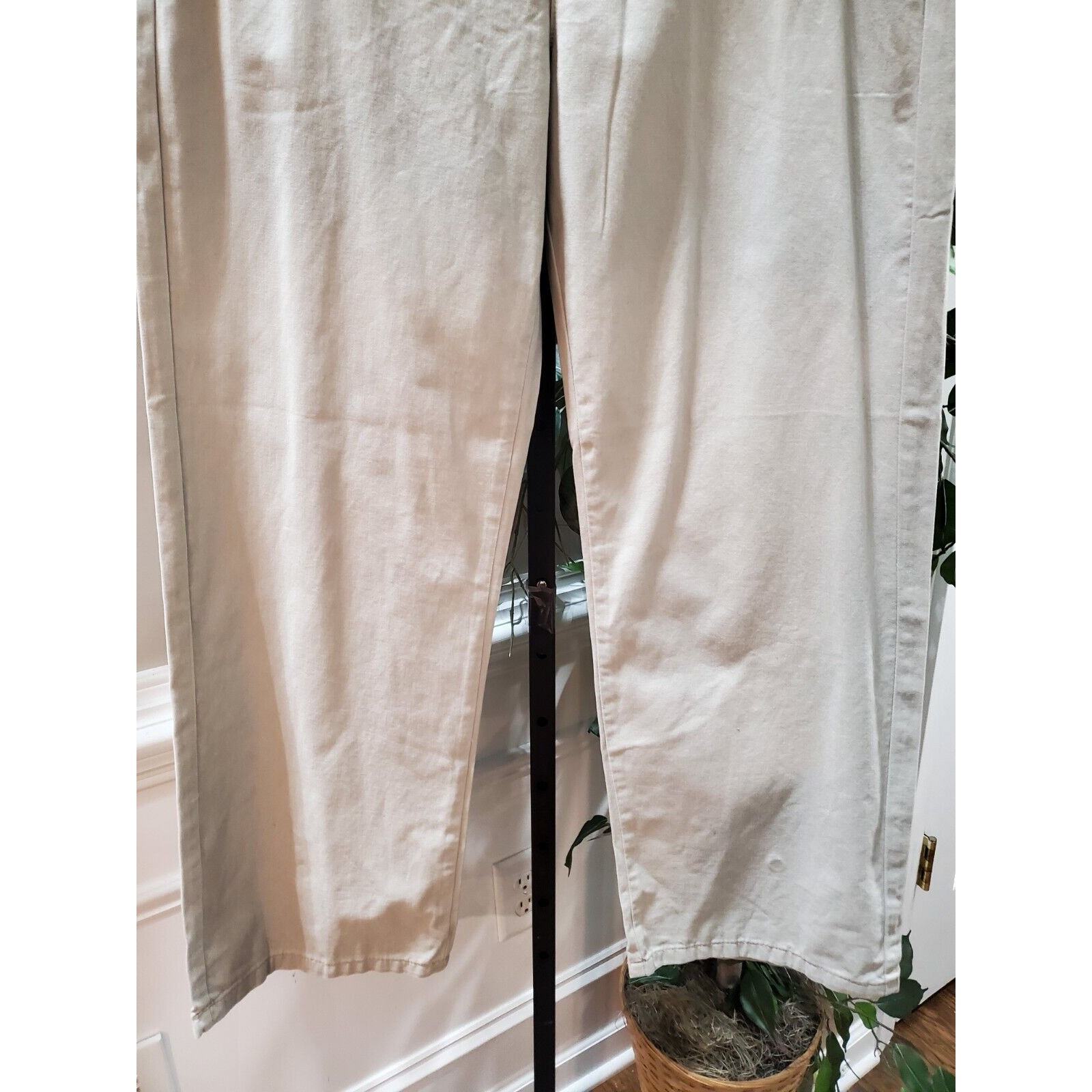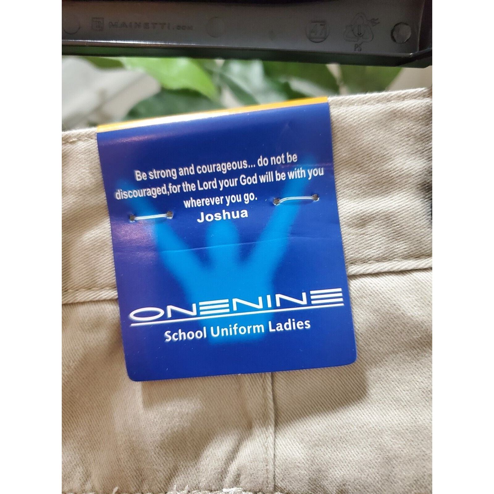 One Nine Women's Solid Beige Cotton Mid Rise Zippered Casual Uniform Pant W18/L32.