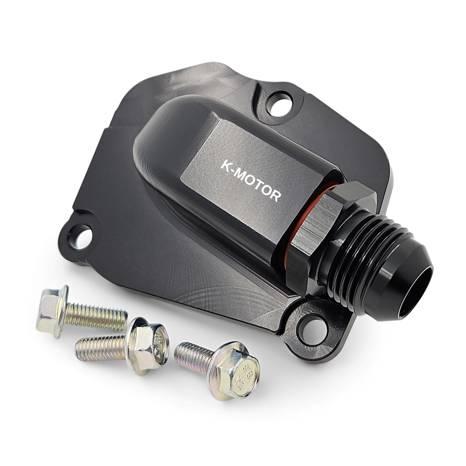 Oil Return Tensioner Cover Plates are the perfect accessory for K20/K24 Top-Mount or Sidewinder-style turbocharger build that uses a factory style timing cover. This adapter allow the installation of an turbo oil return line or oil catch can drain without any drilling or welding.