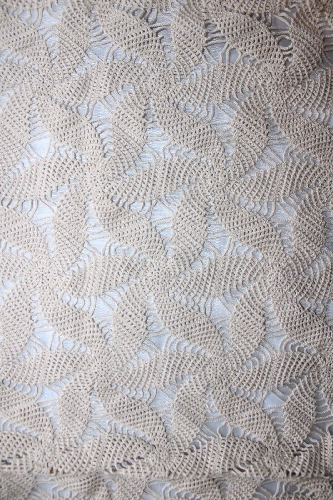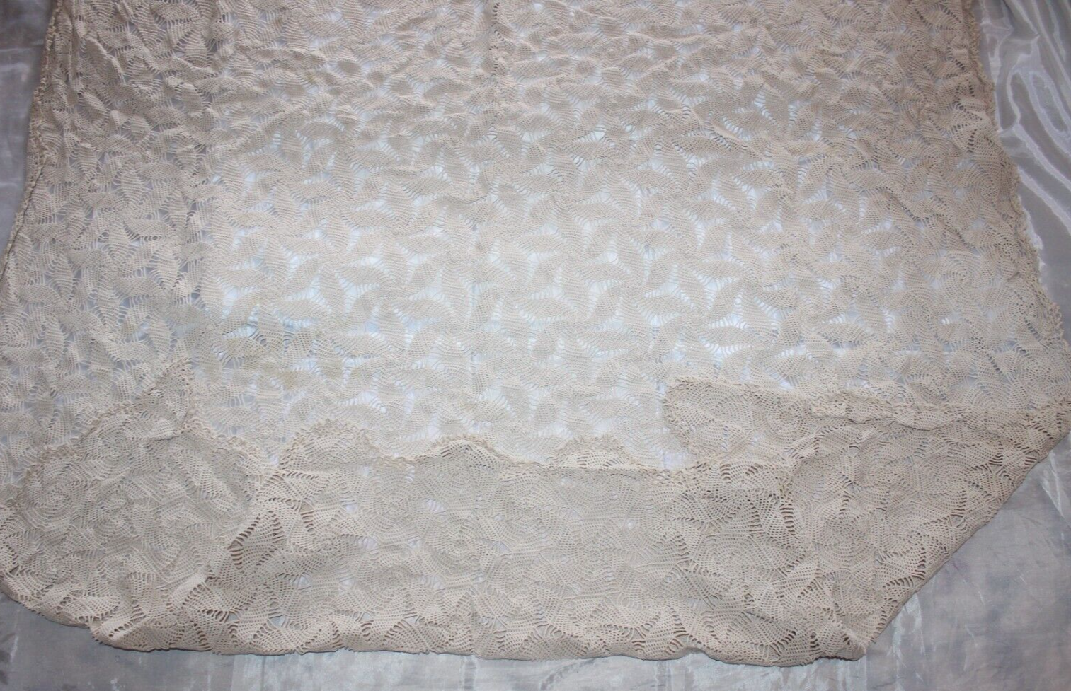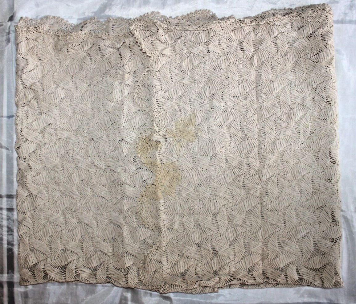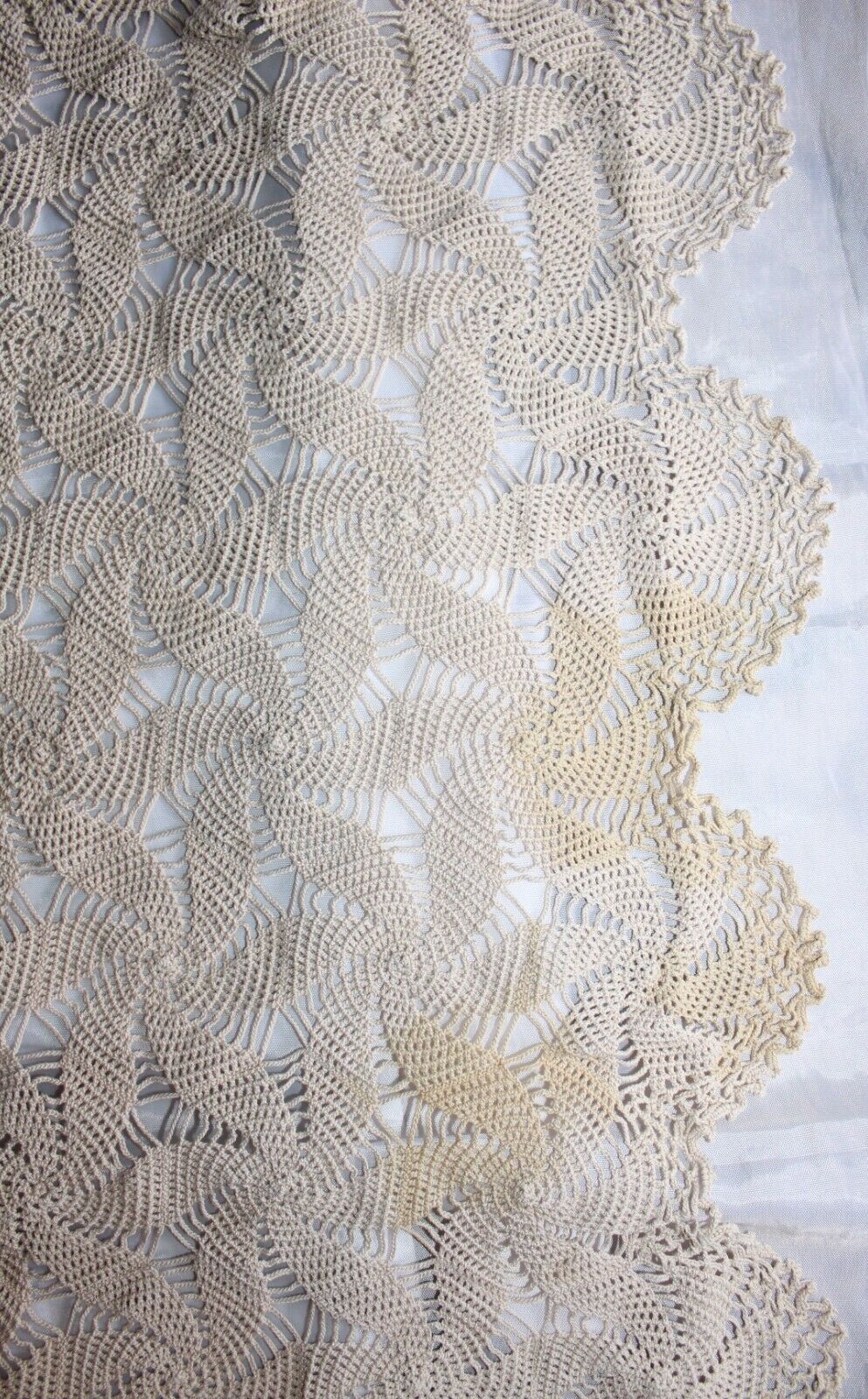 Vintage Handmade Shabby Cottage Chic Crochet Pinwheel Tablecloth 74" X 52"