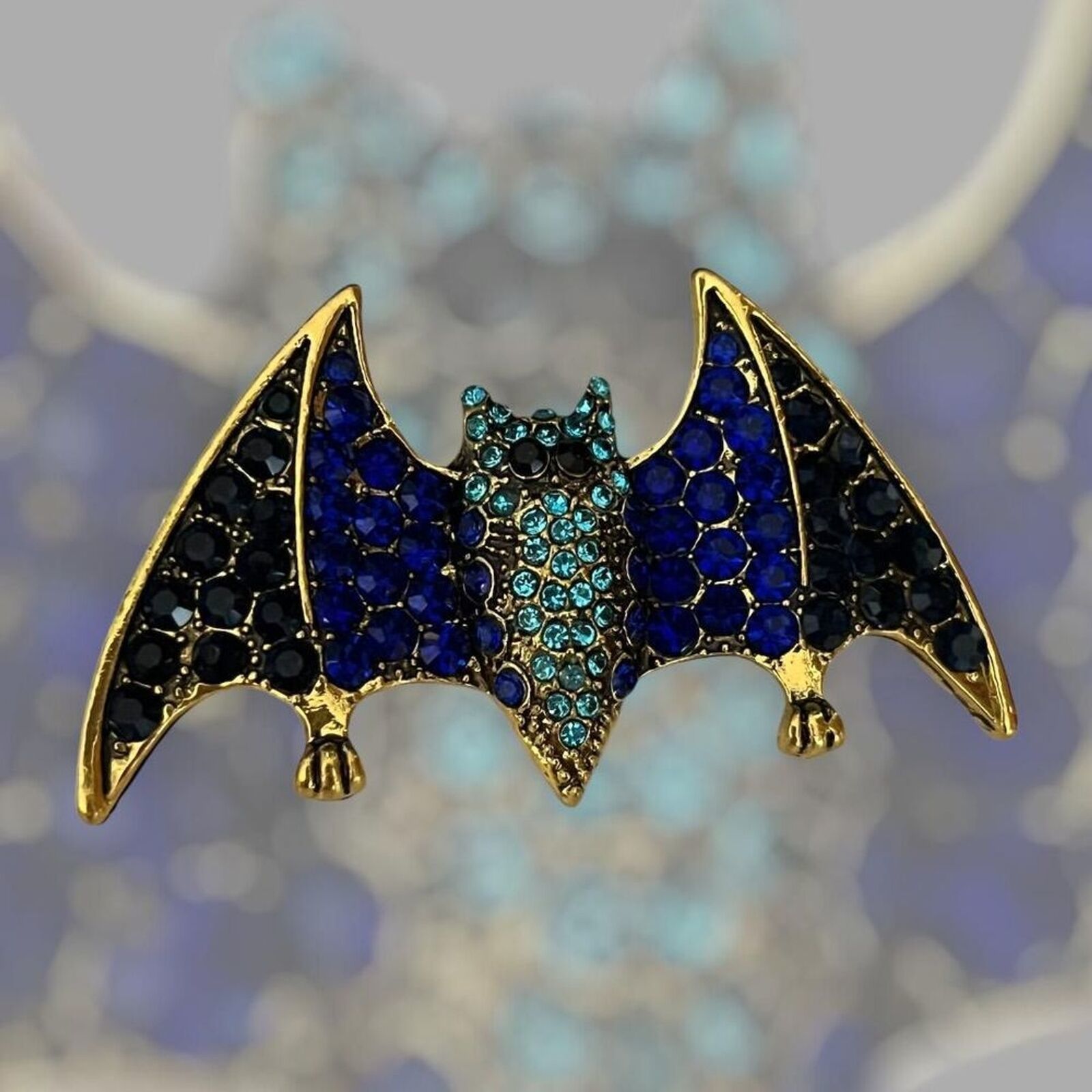 The rhinestone embellishments on the pin are sure to catch the eye and add a touch of elegance to the design. The flying bat design is whimsical and playful, making it a fun accessory to wear. Whether youre looking to add a touch of personality to your outfit or simply want to make a statement, this pin is the perfect choice.