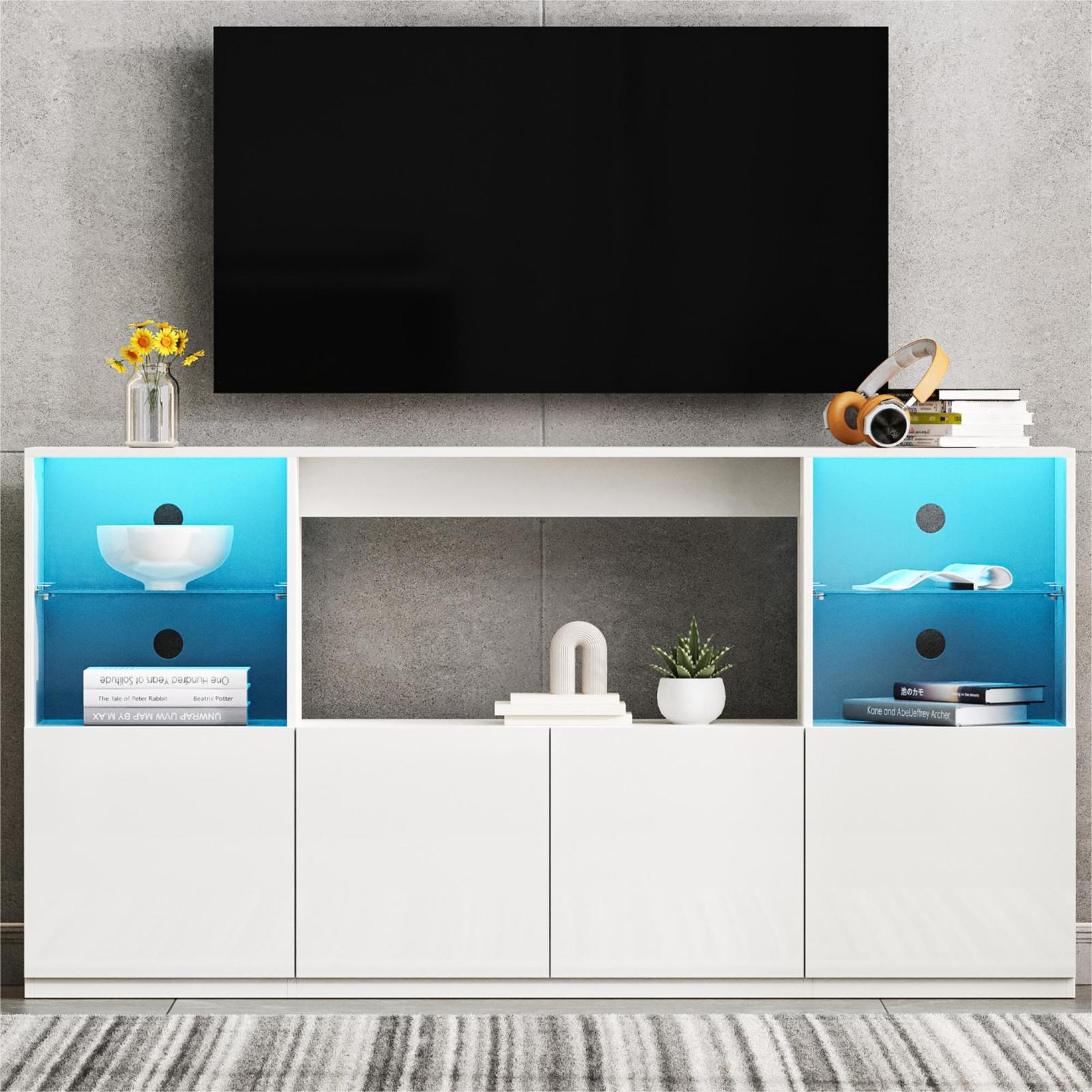 Modern White TV Stand w/ LED Lights, 75" TV Console