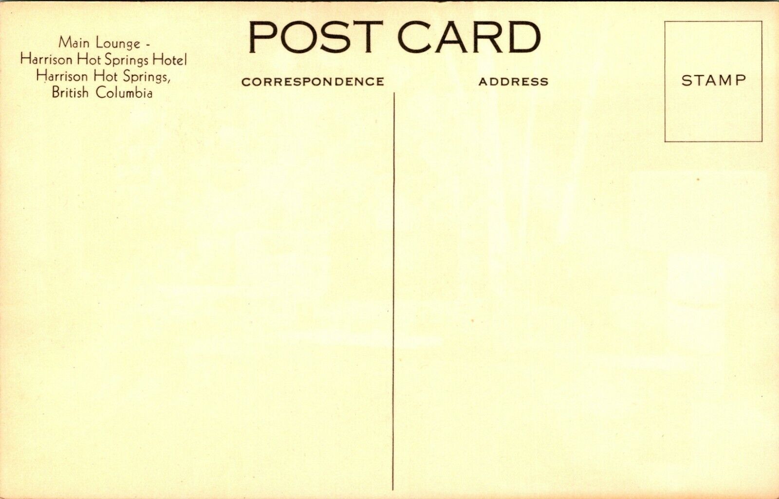 Vtg Chrome Postcard Main Lounge Harrison Hot Springs Hotel BC British Columbia