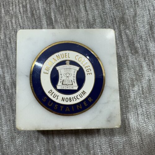 Vintage Emmanuel College Sustainer Paperweight Marble Emblem School Seal Alumni