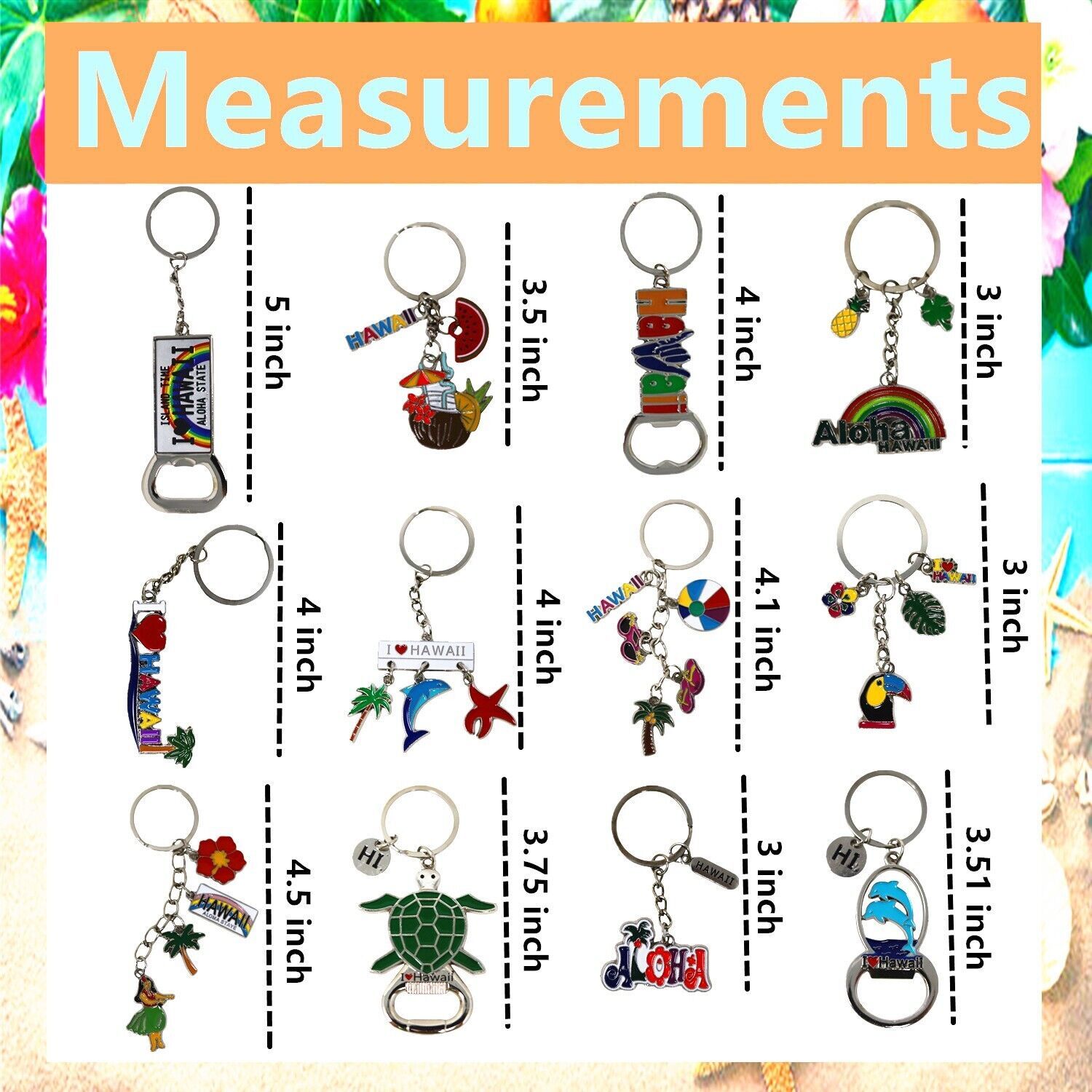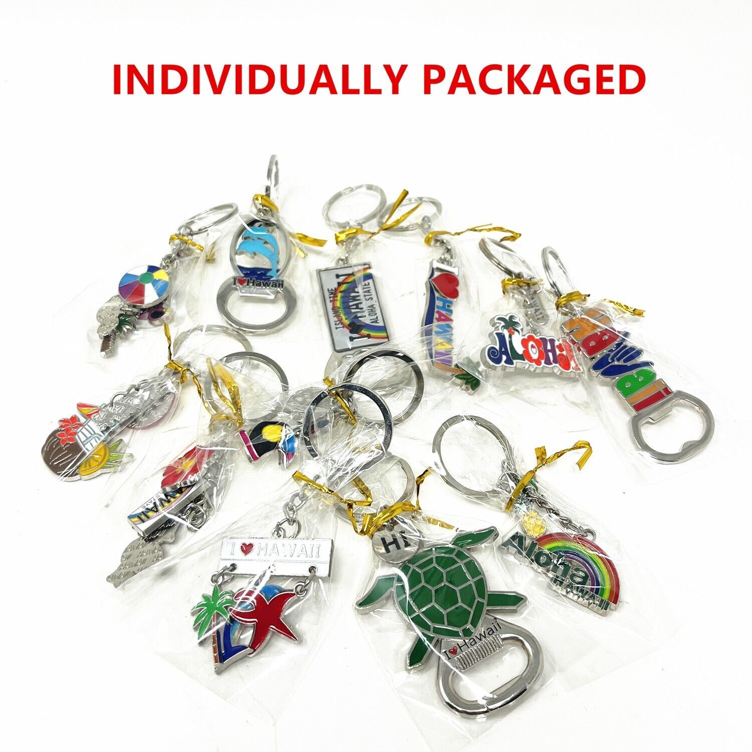 12 Pack of Hawaiian Keychain Souvenirs bulk, Metal Ring, Hawaii Gift Bundle