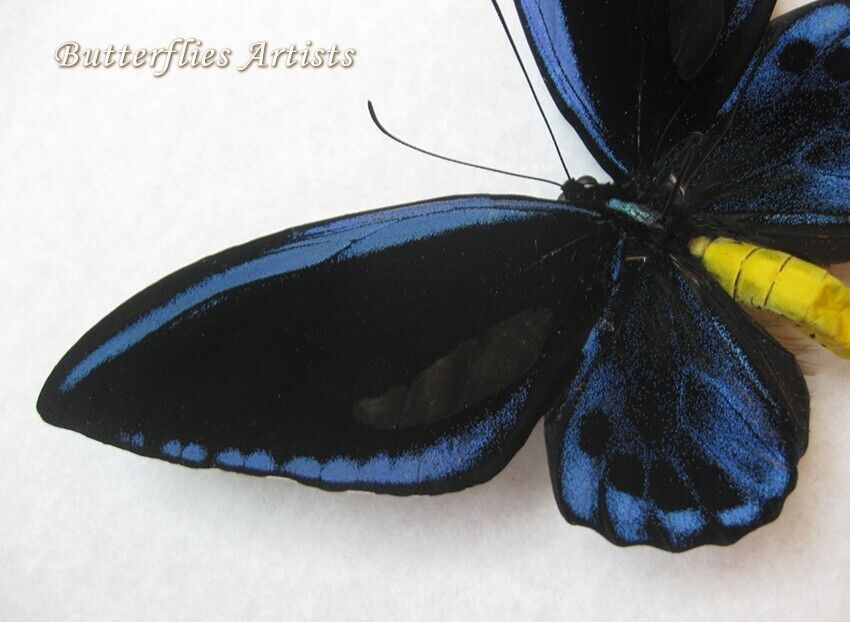 Rarely offered butterflies Ornithoptera priamus urvillianus or the Priam's Blue Birdwing is a butterfly belonging to the Papilionidae family of butterflies. The Priam's Blue Birdwing is one of the largest and most beautiful butterflies in Asia. The stunning blue and glossy black wings.