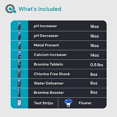 COMPLETE SPA STARTER KIT: The Aquadoc hot tub starter chemicals kit comes with everything you need to keep your spa pristine. The hot tub kit includes Bromine Tablets, Bromine Booster, Calcium Increaser, Ph Increaser, Ph Decreaser, Chlorine-Free Shock, Defoamer, Metal Prevent, Floater, and Test Strips. HOT TUB CHEMICAL STARTER KIT FOR CRYSTAL CLEAR WATER: Keep your water clear and balanced with our rapid dissolving bromine hot tub chemicals that remove cloudy water. HOT TUB MAINTENANCE: Prolong the life of your hot tub with the calcium increaser metal prevent. Our calcium hardness increaser helps water balance to reduce corrosion, while the metal prevent helps reduce metal buildup that stains the surface hot tubs. PH BALANCE KIT: Our spa starter kit for hot tubs includes both pH increaser and decreaser so you can easily maintain your hot tub chemistry. Our spa start up kit is a great inflatable hot tub chemical kit. MADE IN THE USA: Aquadoc is a leader in the hot tub and spa industry, producing high-quality spa chemicals made in the USA. Our hot tub water kits provide everything you need to keep your hot tub and spa in perfect condition.