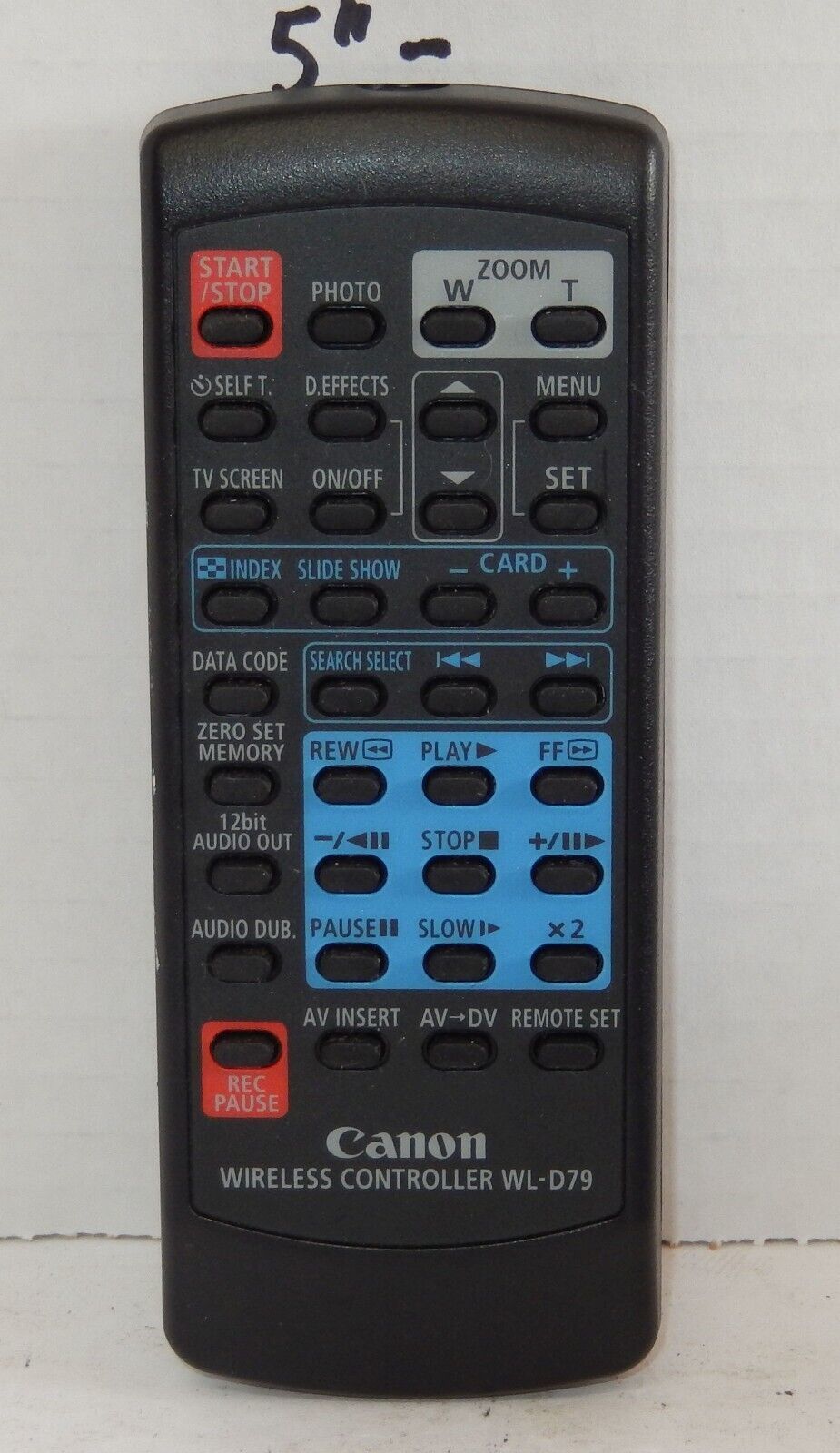 For Sale is a Canon WL-D79 WLD79 Camcorder Remote Control For ZR65 ZR70 Optima 10 20 30. it in good used condition as seen in the pictures provided what you see is what you will receive. Has been tested and works. Please ask Any and All Questions prior to purchasing. Fast Same or Next day shipping with Free Delivery Confirmation within the U.S. Payment Due within 7 days of purchase (if you need more time please let us know In advance) we love to combine shipping is always a Yes and Most of the time Additional Items Ship for free.