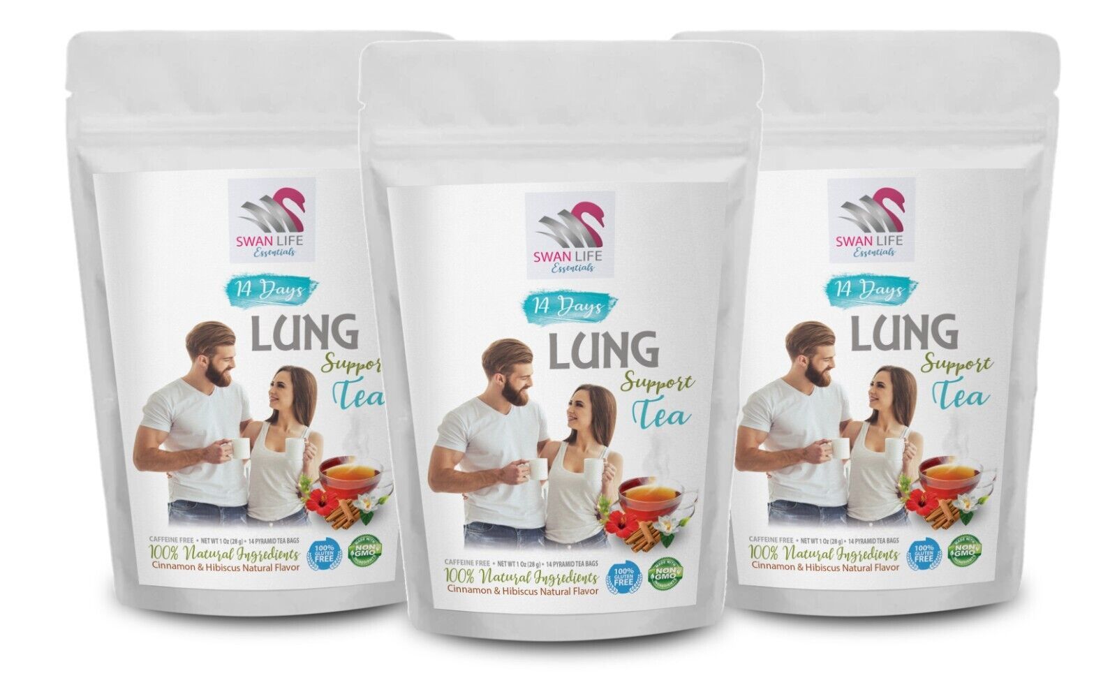 SWAN LIFE ESSENTIALS Introducing Respiratory and Lung Support herbal tea exquisite fusion of nature's finest ingredients thoughtfully crafted to promote optimal lung and respiratory well-being. Promote optimal respiratory with our expertly created Respiratory and Lung Support Tea. Harnessing the power of nature, this blend is thoughtfully manufactured with Cinnamon, Hibiscus, Marshmallow Root, Astragalus, Peppermint, and Eucalyptus six botanical treasures known for their remarkable respiratory benefits. Astragalus fortifies your body's natural defenses, contributing to a resilient immune system and overall respiratory well-being. Peppermint and eucalyptus join forces to provide a breath of fresh air, promoting clear and unobstructed respiratory passages. Hibiscus and marshmallow root offer a gentle touch, providing comfort to irritated respiratory passages and promoting a sense of ease. Cinnamon and hibiscus, rich in antioxidants, combat oxidative stress, supporting the overall health of your respiratory system.